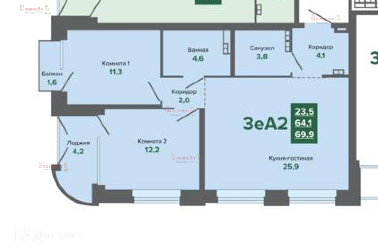 Общая площадь 64 м2