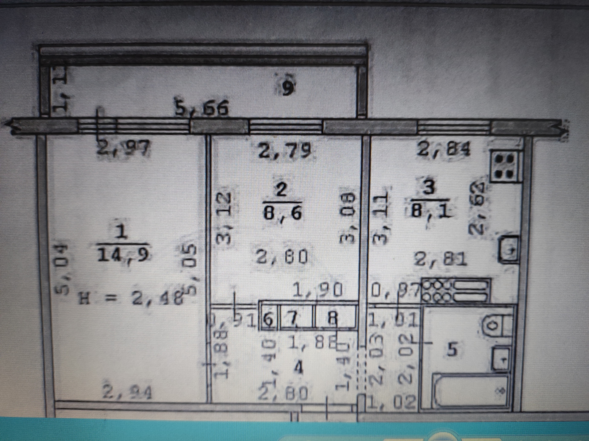 Балкон, лоджия 1 балкон