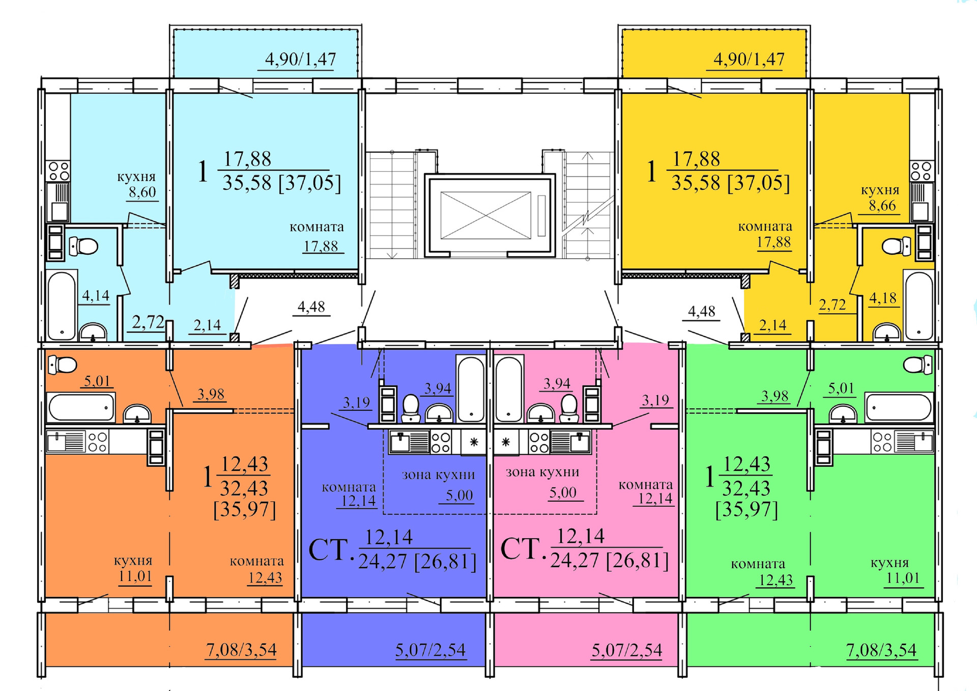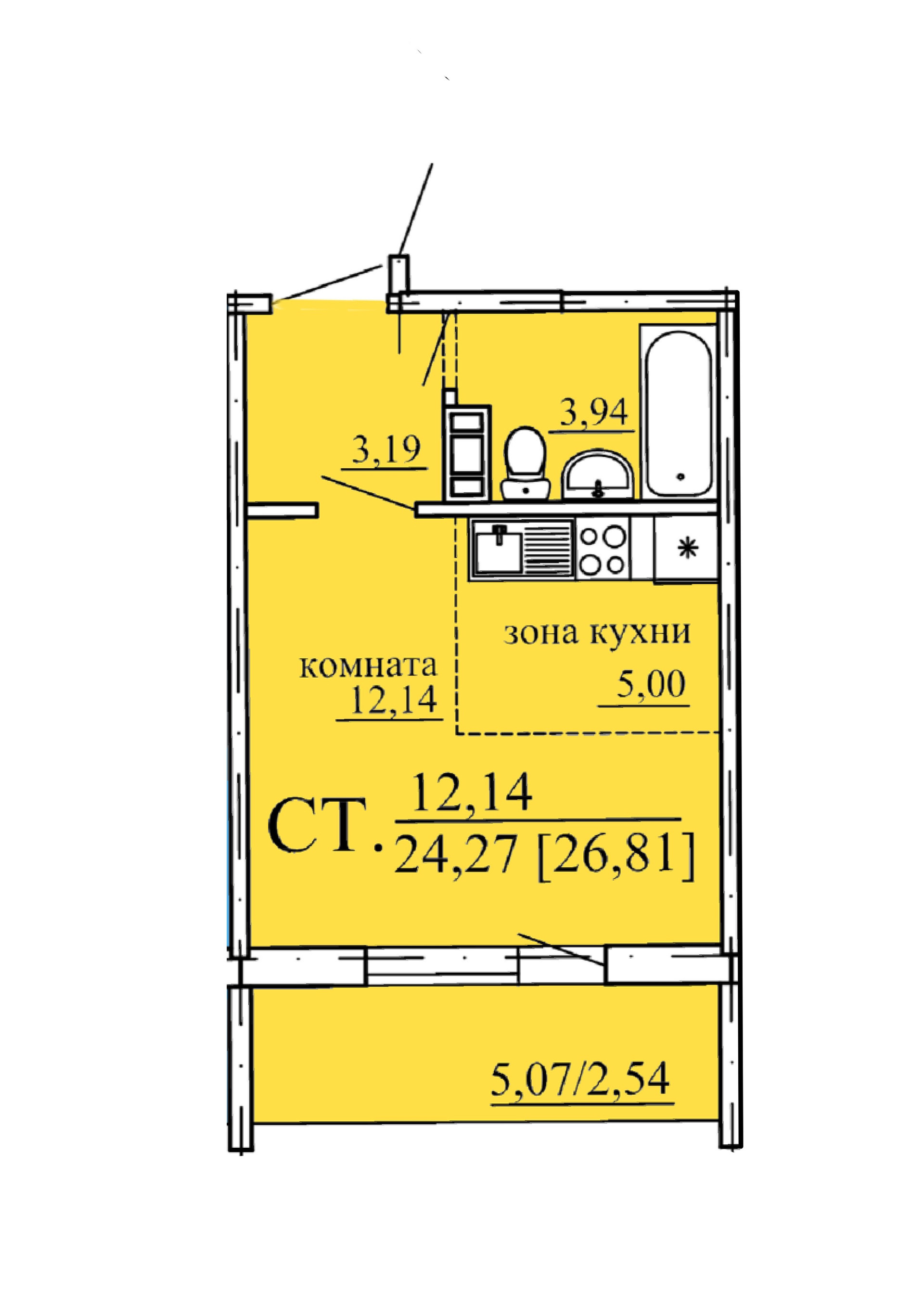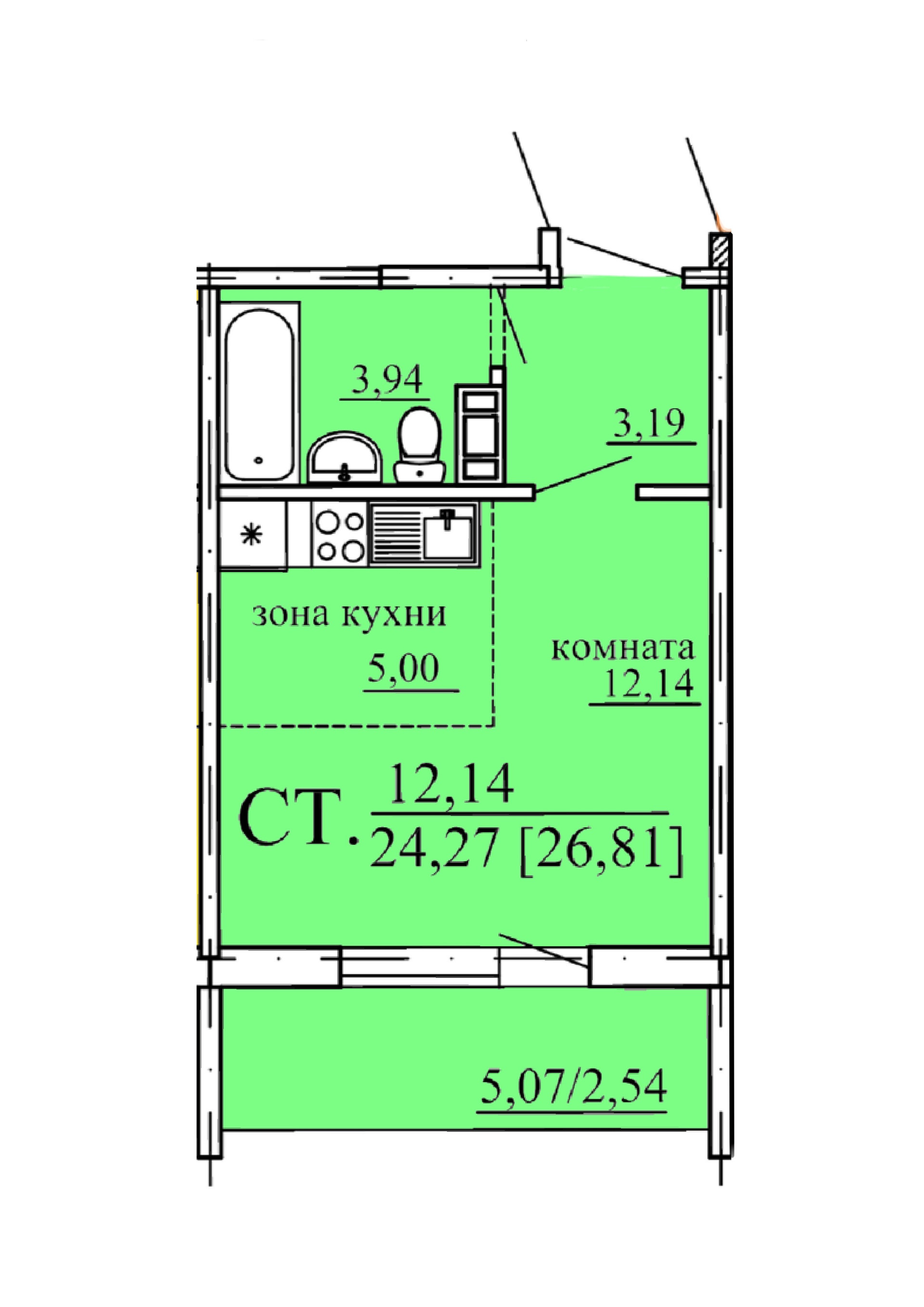 Общая площадь 26.8 м2