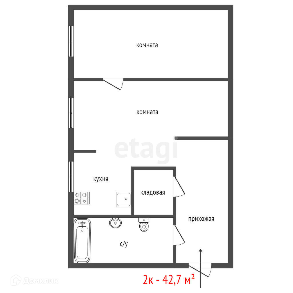 Общая площадь 42.7 м2