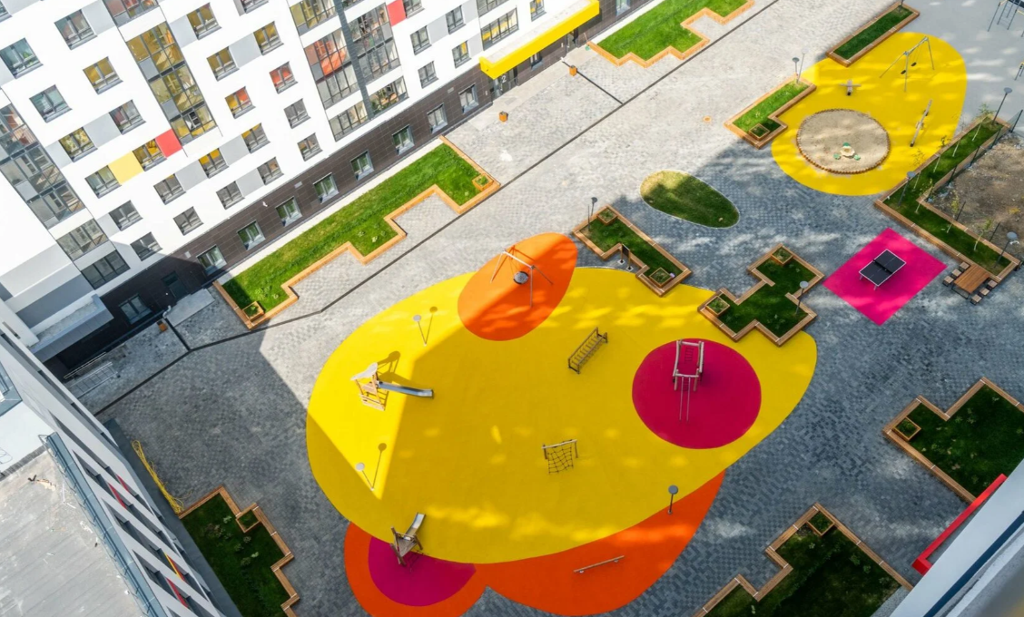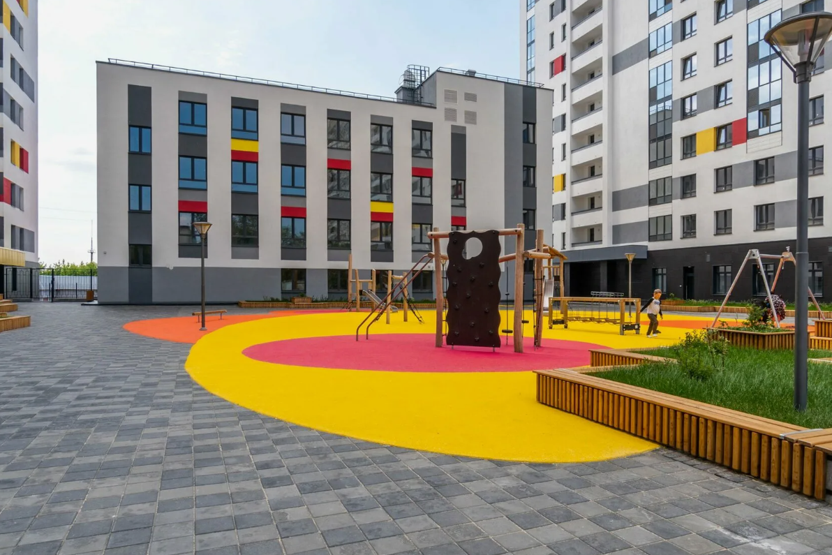 Территория внутреннего двора Комсомольской, 67 разделена на несколько функциональных зон для игр детей разных возрастов, занятий спортом и соседского досуга. Детские площадки построены из современных и полностью безопасных материалов.