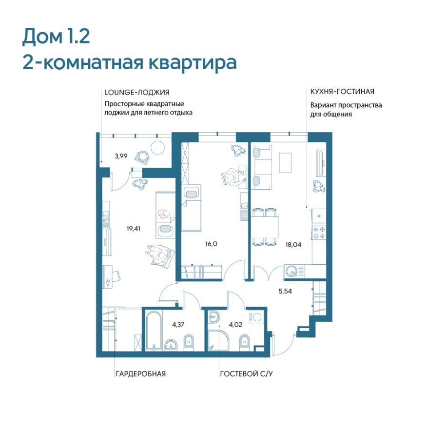 Площадь кухни 18.04 м2