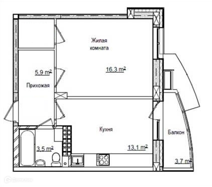 Балкон, лоджия 1 балкон