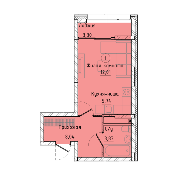 Балкон, лоджия 1 балкон