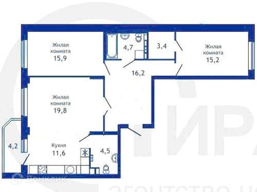 - кухня-гостиная (30 кв.м.) и две комнаты (16+16 кв.м.) - план квартиры есть на фото;