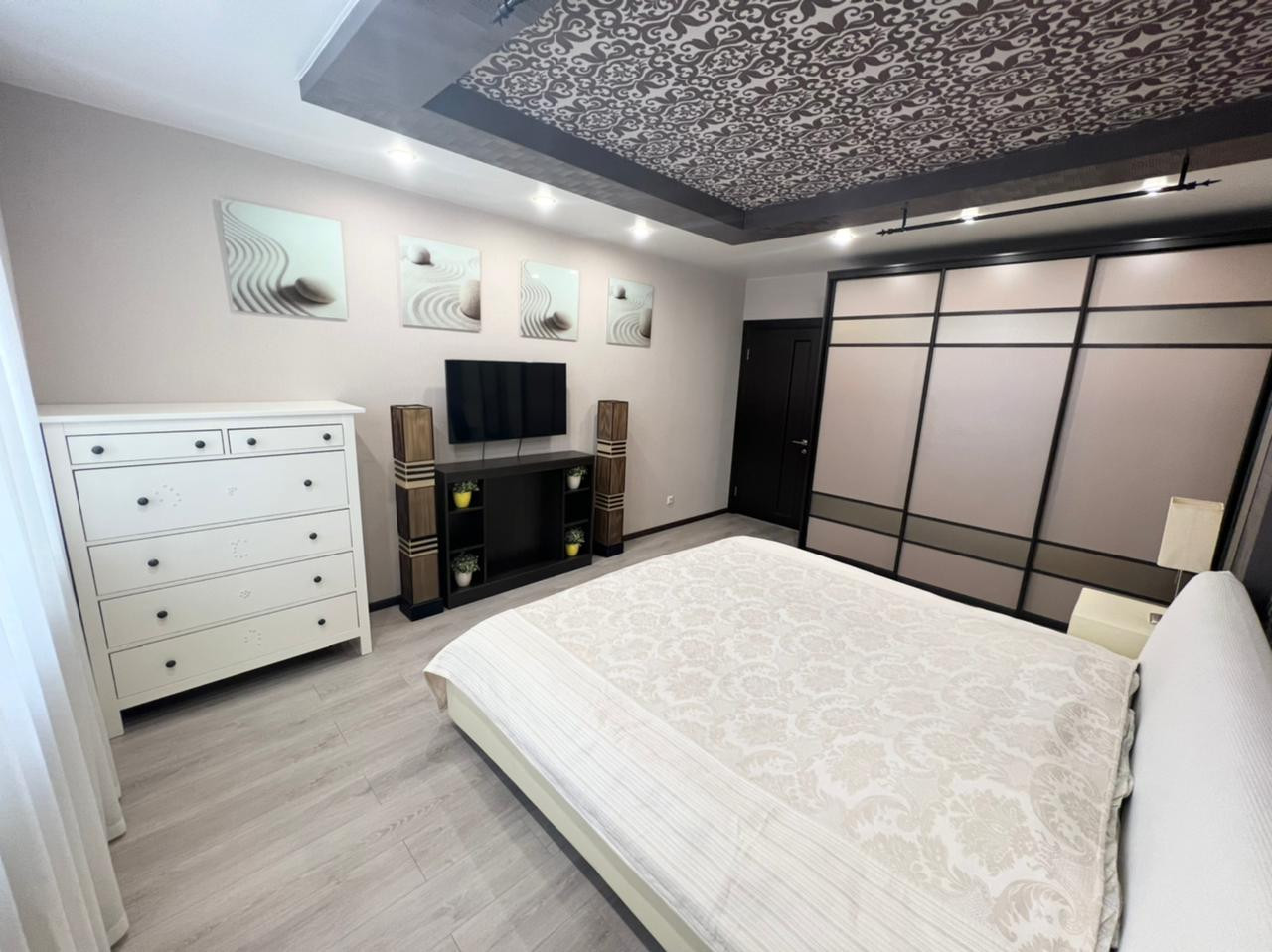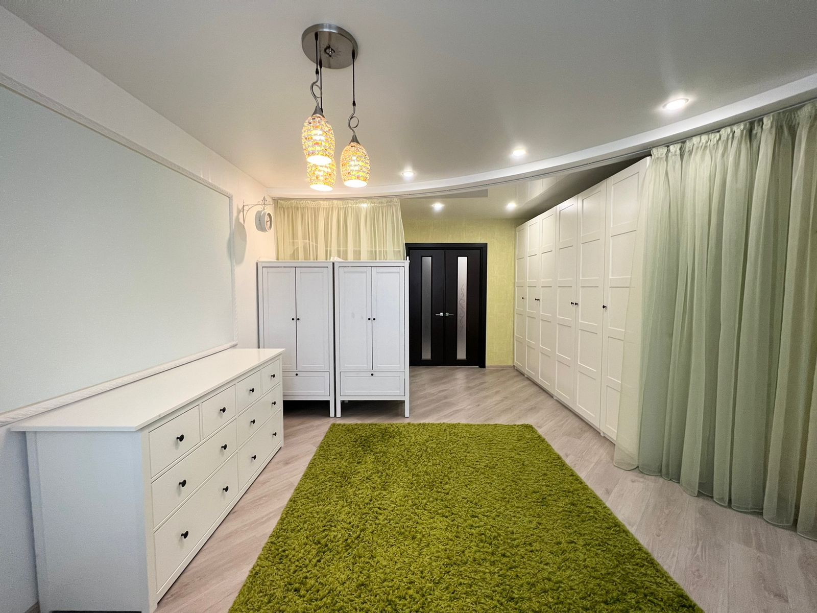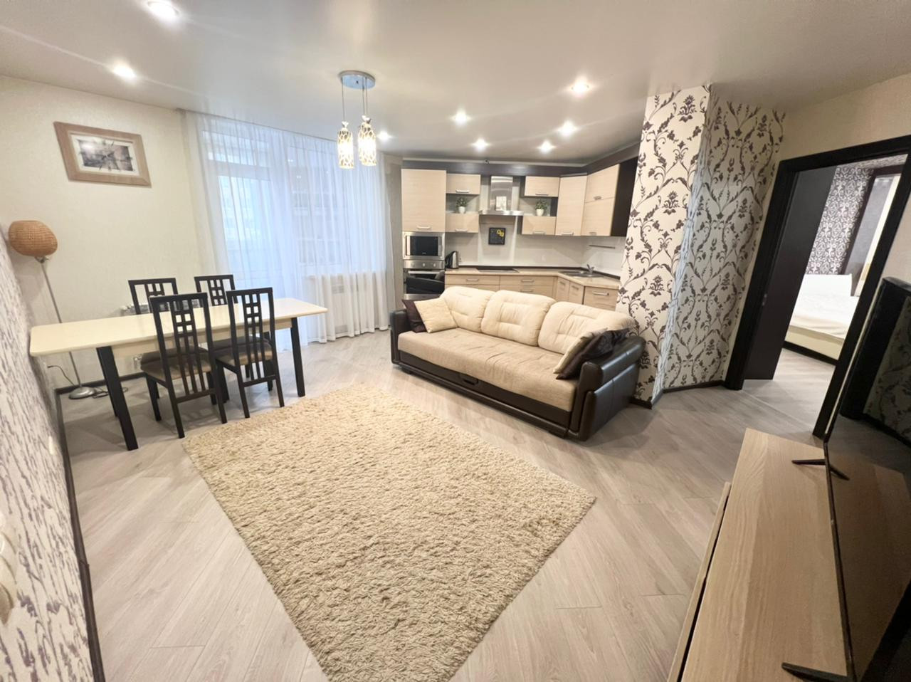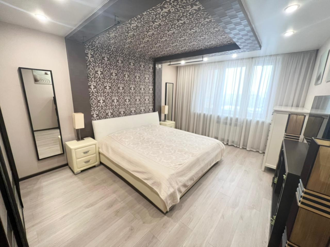 Продаётся уютная трехкомнатная квартира в ЖК "Университетский". Удобная планировка квартиры. Кухня-гостиная 26 кв.м.  и две жилых комнаты - 23 кв.м. и 19 кв.м. Есть отдельная гардеробная комната. Во всей квартире установлены современные радиаторы отопления. Кухонный гарнитур со всей встроенной техникой: духовой шкаф, электрическая плита, вытяжка, микроволновая печь, холодильник, посудомоечная машина. Стол со стульями и  диван. В спальне кровать, тумбы и шкаф-купе. Во второй спальне шкаф, стол со стулом, тумба. В прихожей шкаф-купе. Как говорится заезжай и живи.
