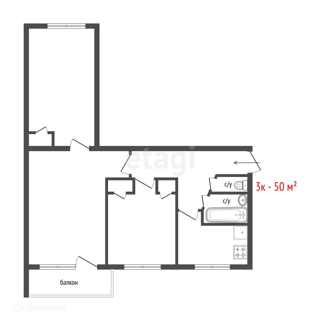 3-комнатная квартира, 50 м2, этаж 3 / 5, на продажу в Екатеринбурге, улица Корепина, 30А