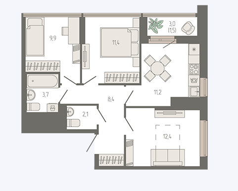 Количество комнат 3