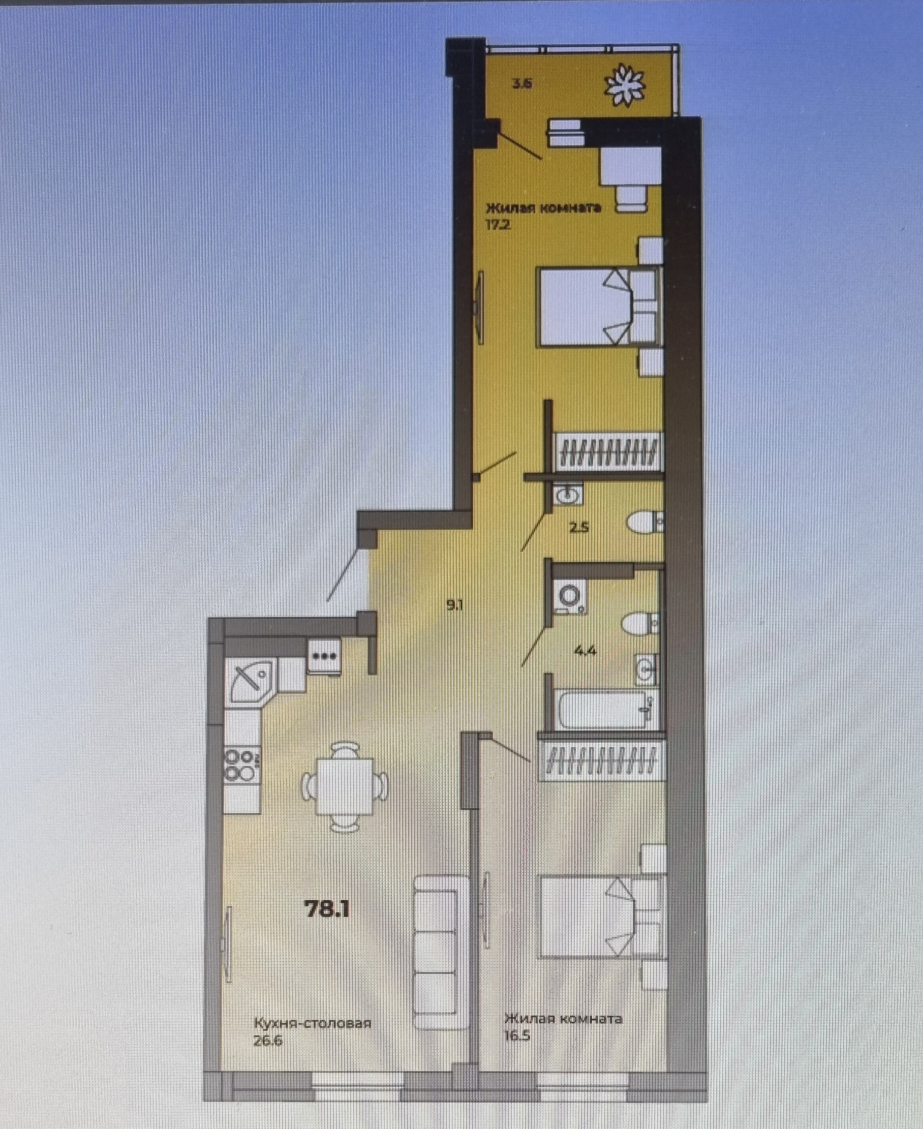 Общая площадь 78.1 м2