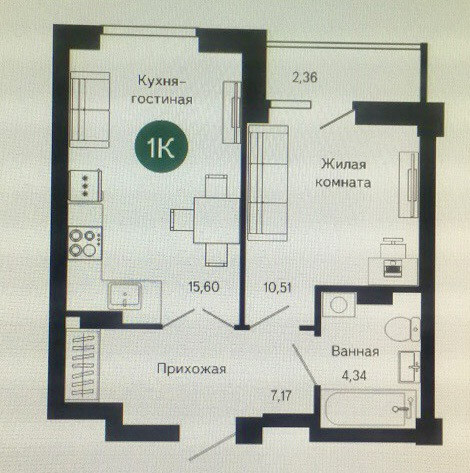Жилая площадь 10.51 м2