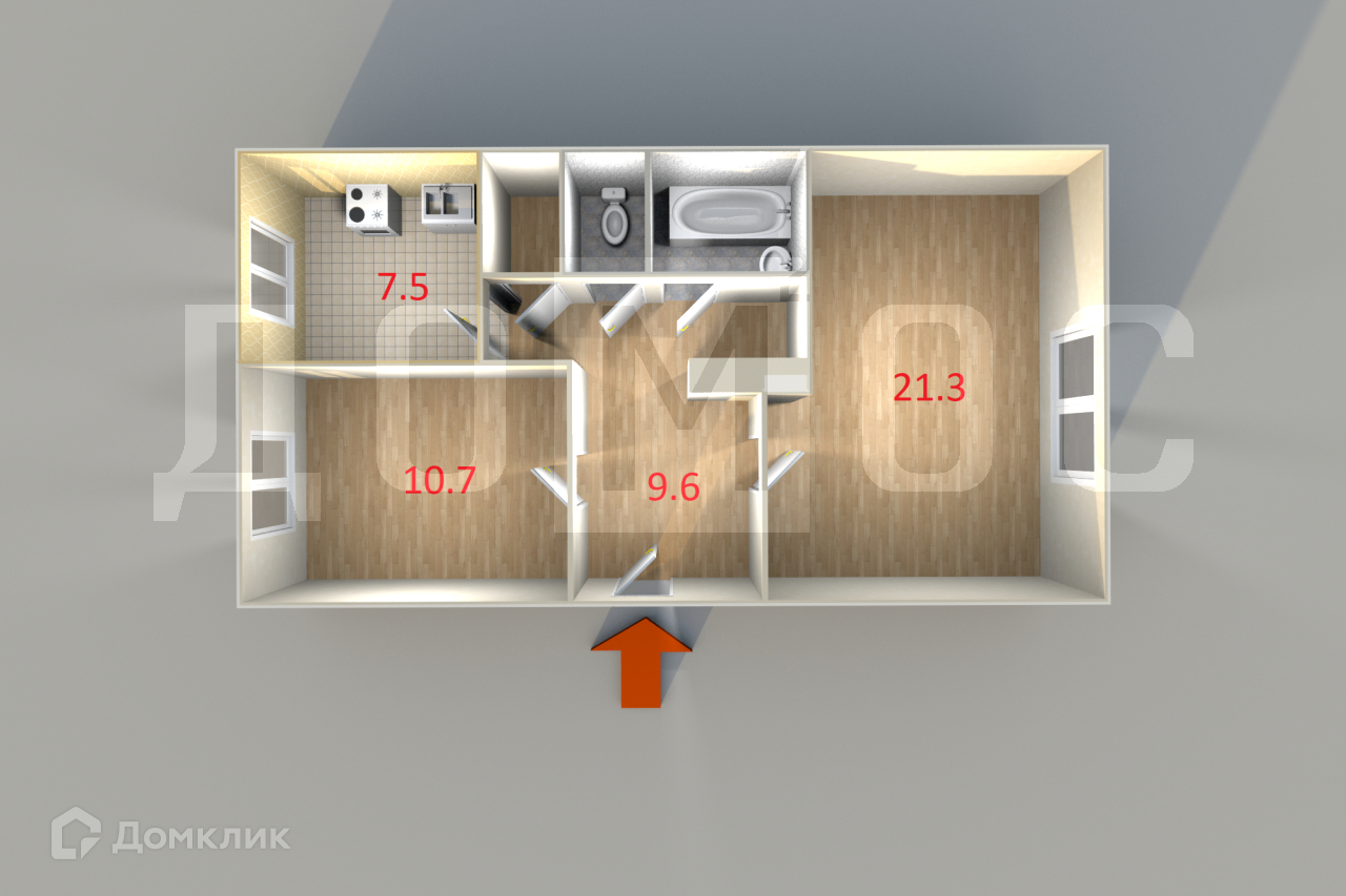 Большой квадратный коридор (9,6 кв. м) позволяет разместить всю необходимую мебель и чувствовать себя комфортно даже толпе гостей. Кроме этого, 3 вместительные гардеробные также разгружают пространство. Уютная кухня (7,5 кв.м) выполнена в теплых абрикосовых тонах, оборудована кухонным гарнитуром. Две изолированные просторные комнаты (20.3 кв.м и 10,7 кв.м). Раздельный санузел.