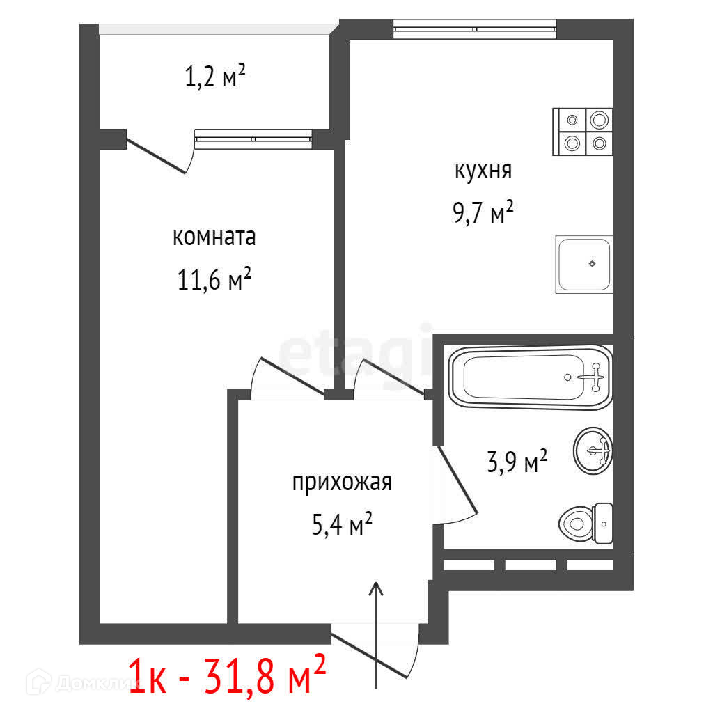 Общая площадь 31.8 м2