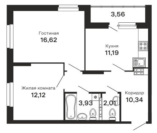 Эргономичная классическая планировка с кухней 11,2 кв.м., гостиной 16,6 кв.м. и просторной спальней 12,1 кв.м. Входная зона площадью 10,3 кв.м., с отличной возможностью размещения шкафа-купе для хранения вещей. Высота потолков 2,75 м.