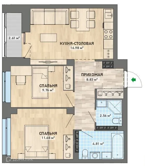 Общая площадь 54 м2