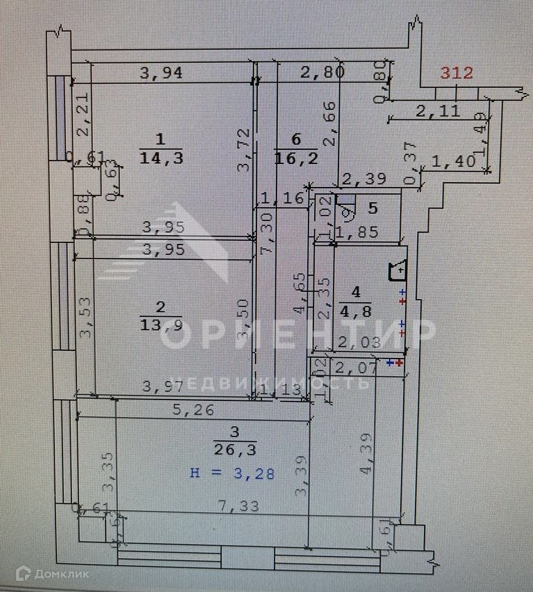 Высота потолков 3.3 м