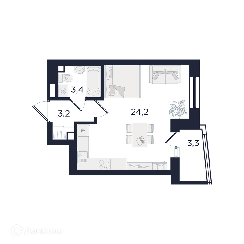 Общая площадь 32.5 м2