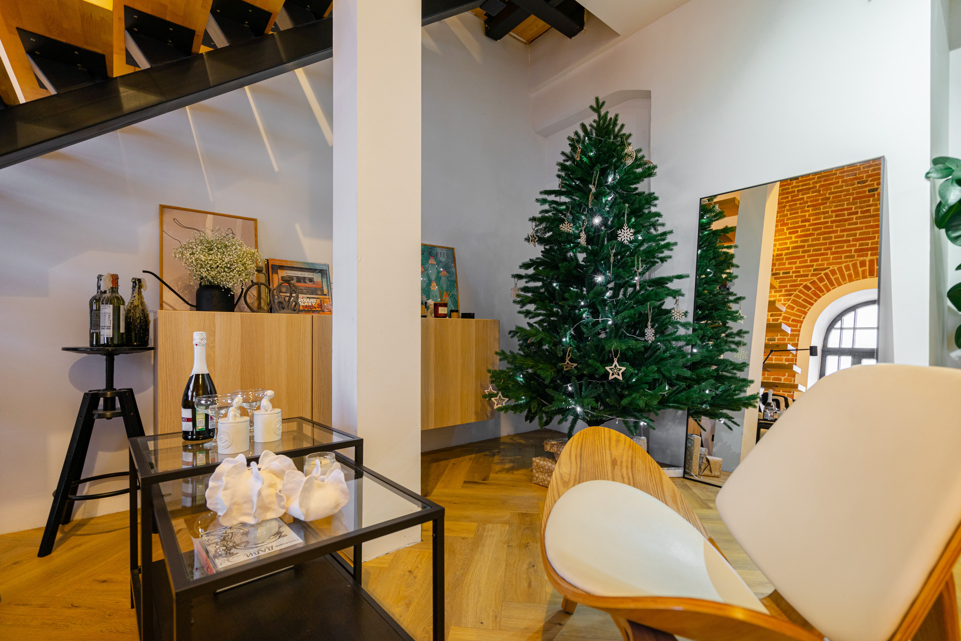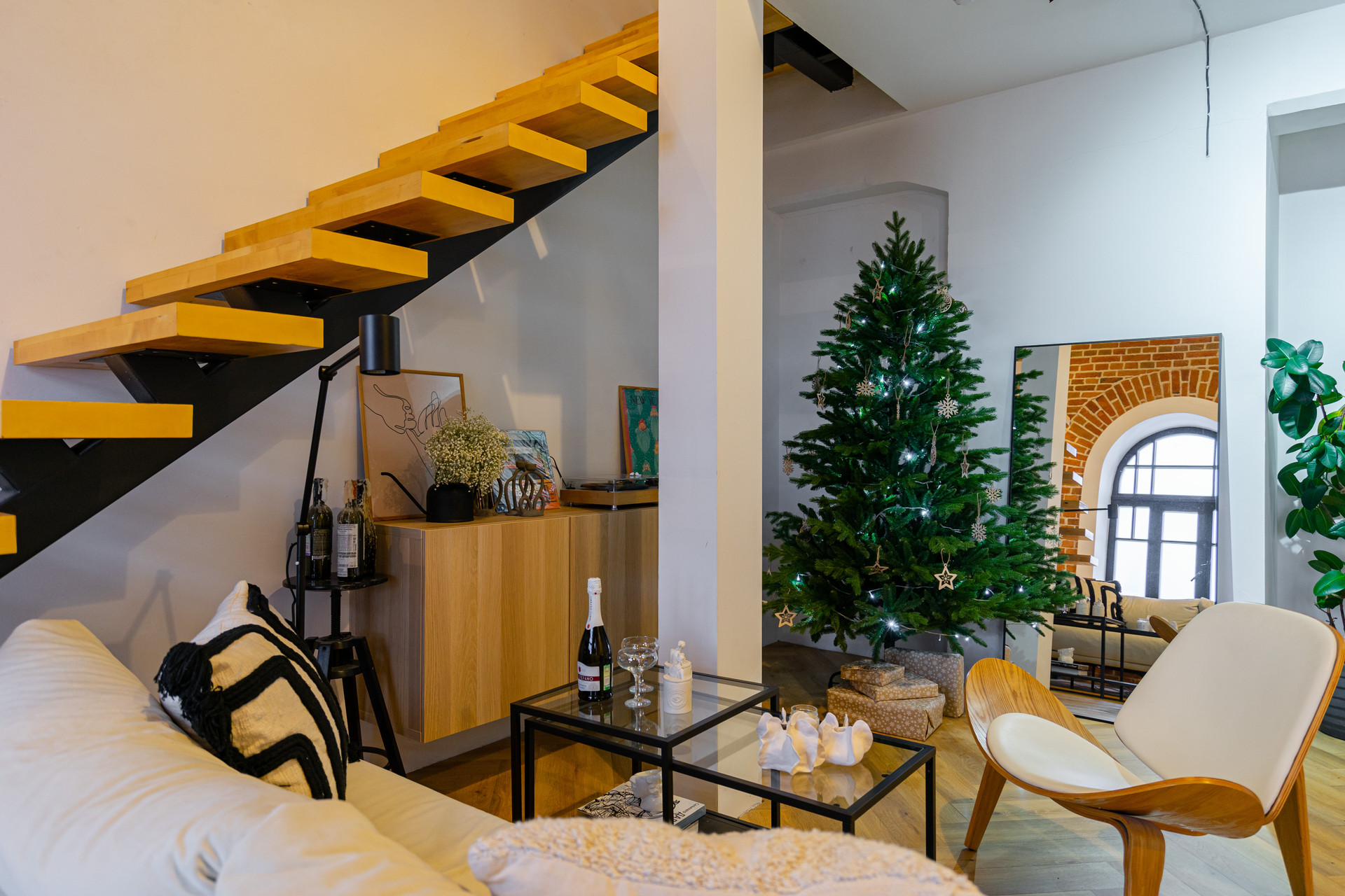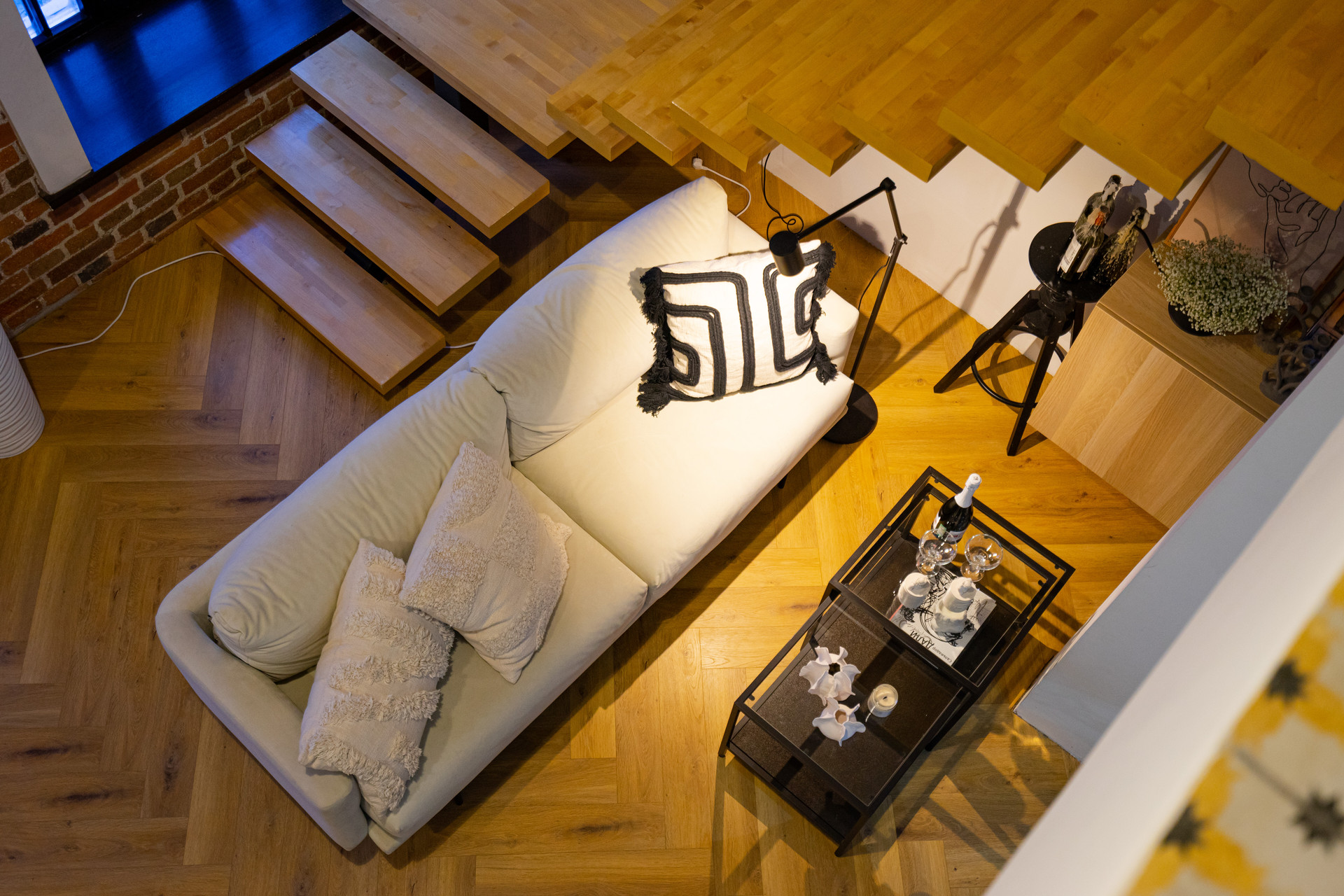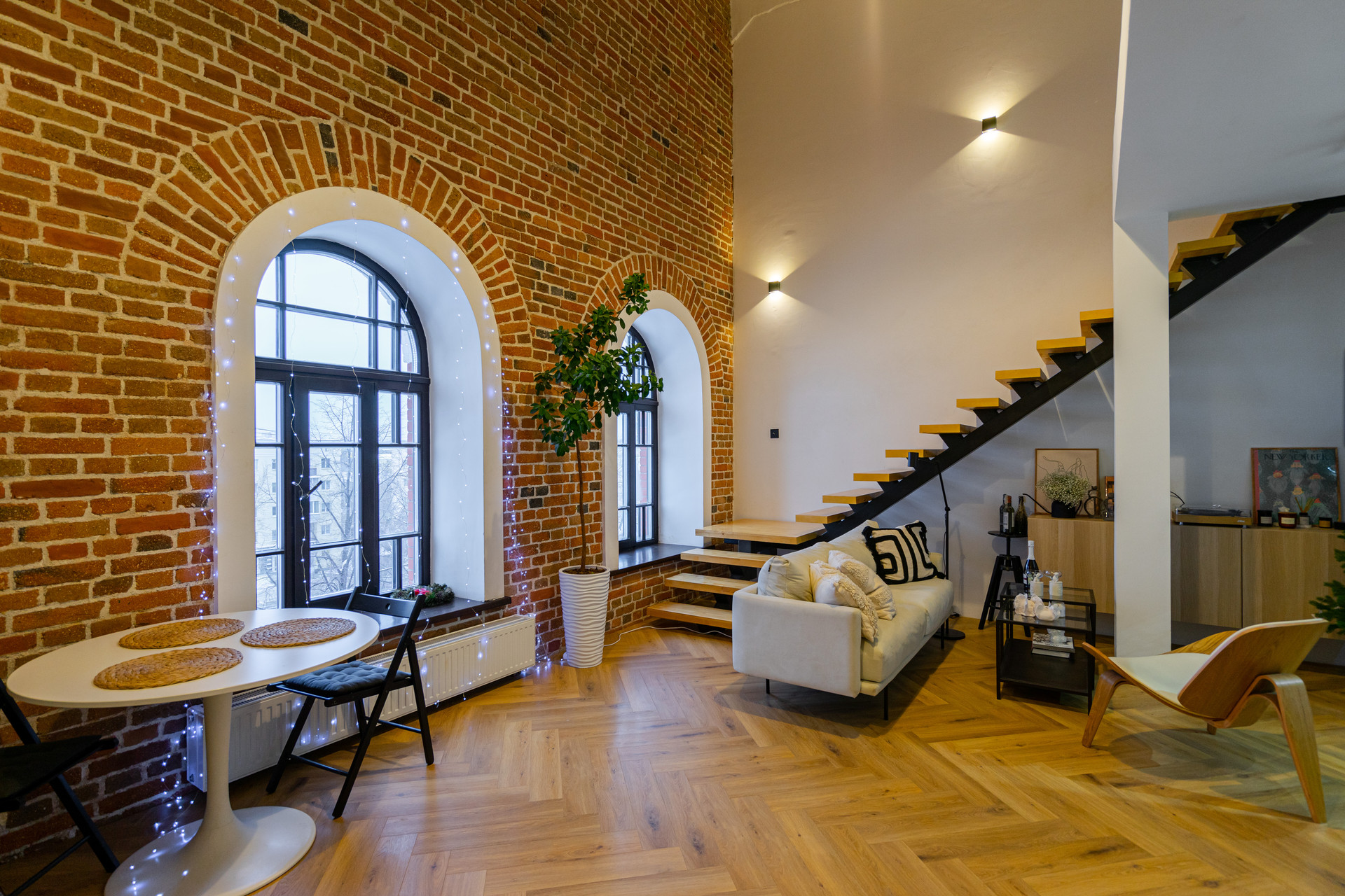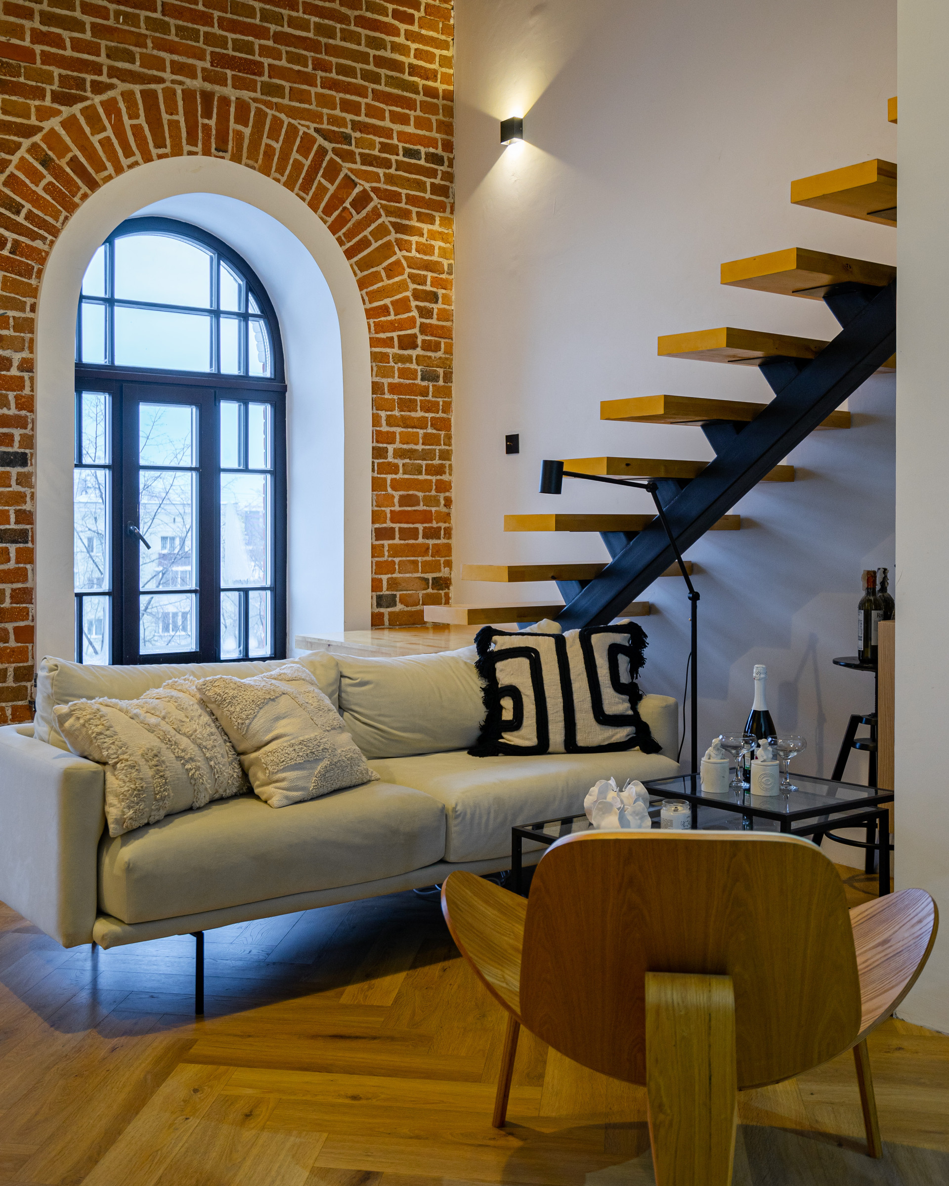 Также, архитектура здания и конкретно этих апартаментов позволяет сделать дополнительную лестницу для выхода на свою часть крыши (мансарду), что позволит увеличить как инвестиционную привлекательность объекта (как вариант - дополнительные фотозоны (уже есть крутые идеи для реализации), так и получить пространство с прекрасным видом на активный город.
