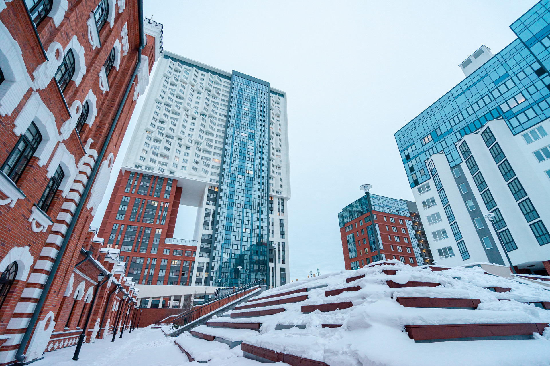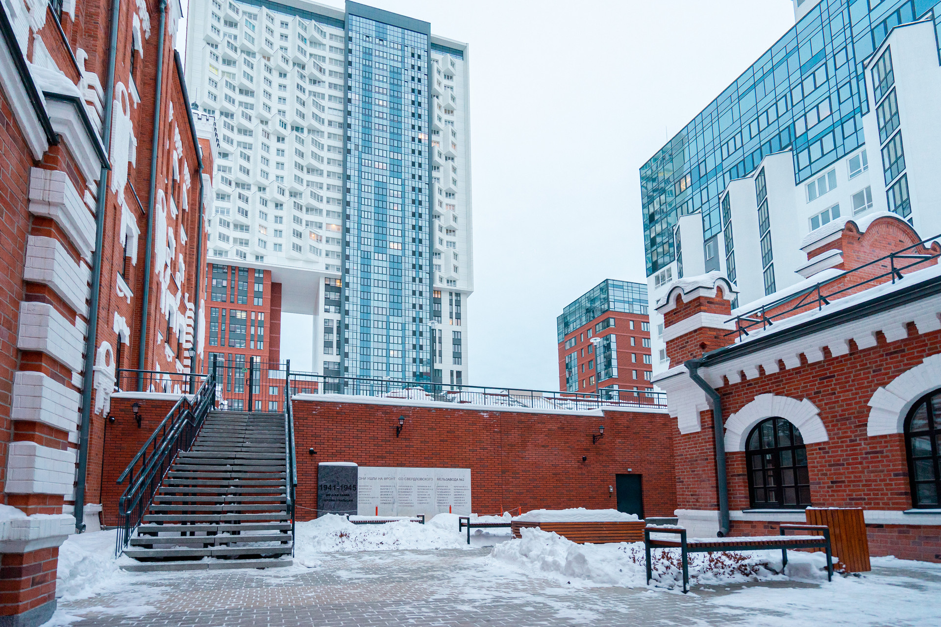 Комфортное расположение здания позволяет наслаждаться потрясающей красотой внутреннего двора в стиле старой Европы с подсветкой по вечерам. В теплое время года работает водопад с подсветкой, а также есть места для посиделок и чтения.