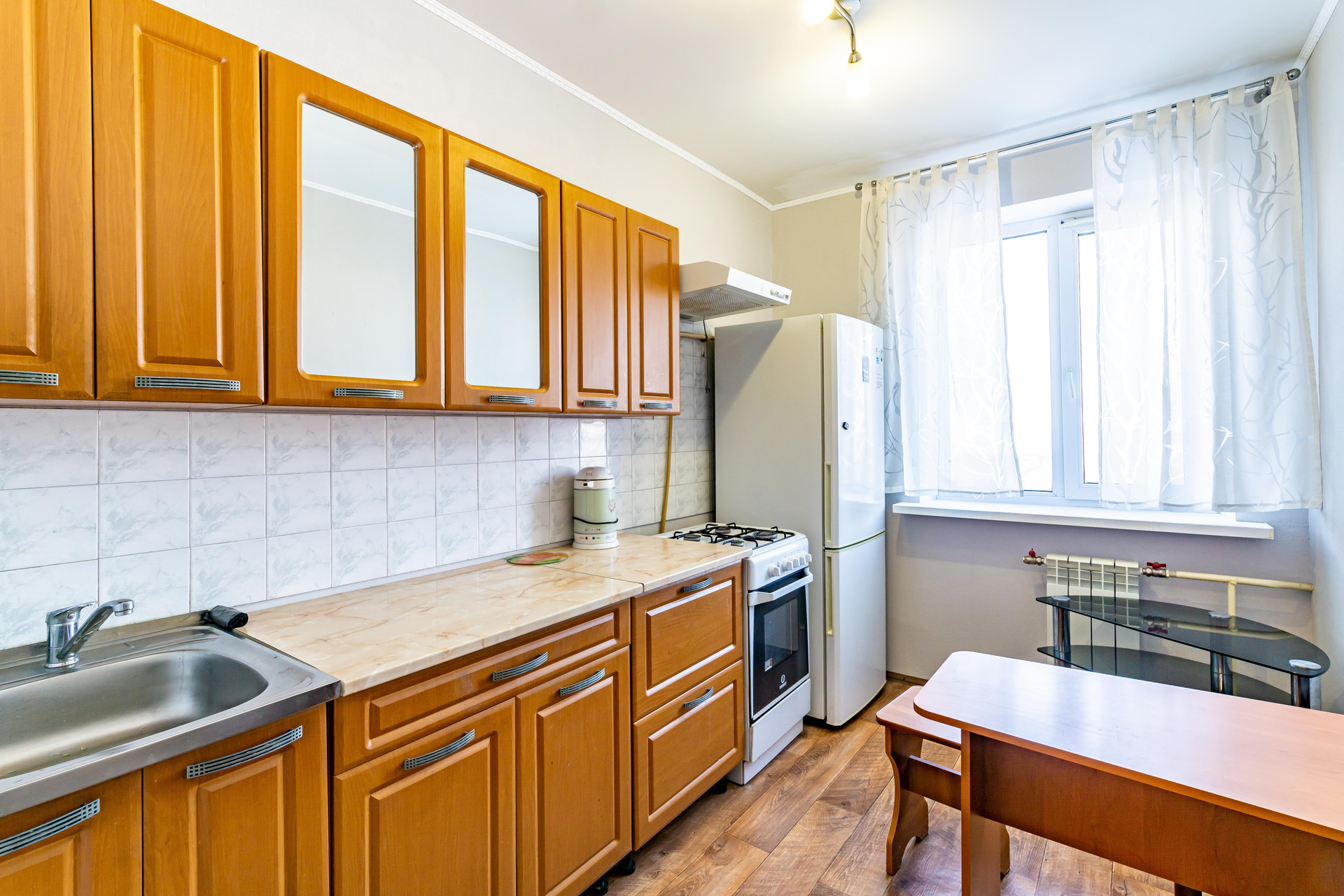 БОНУС!!!!! В квартире при продаже остаётся вся мебель, кухонный гарнитур, техника: плита, вытяжка, холодильник.