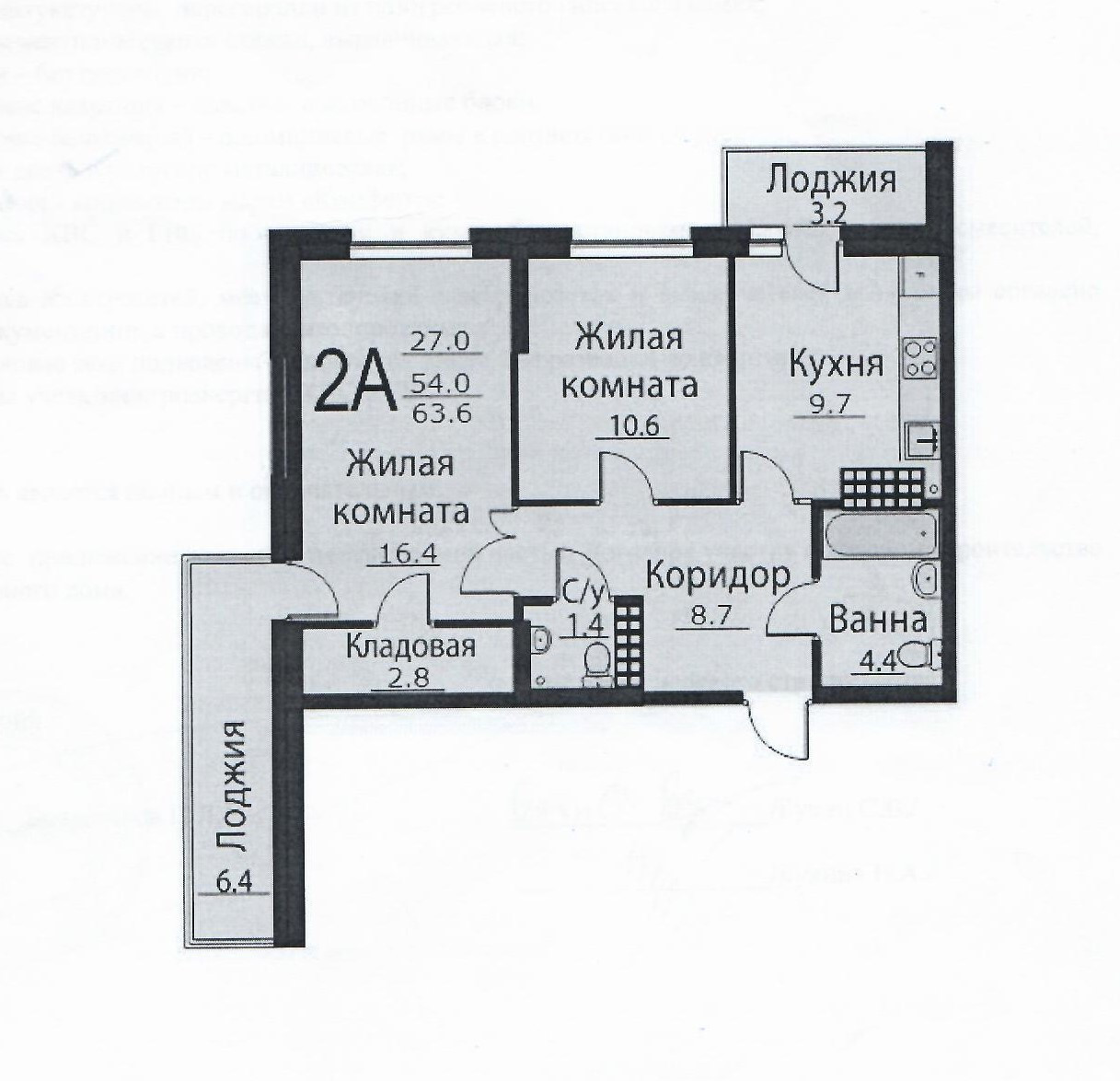 Общая площадь 52.6 м2