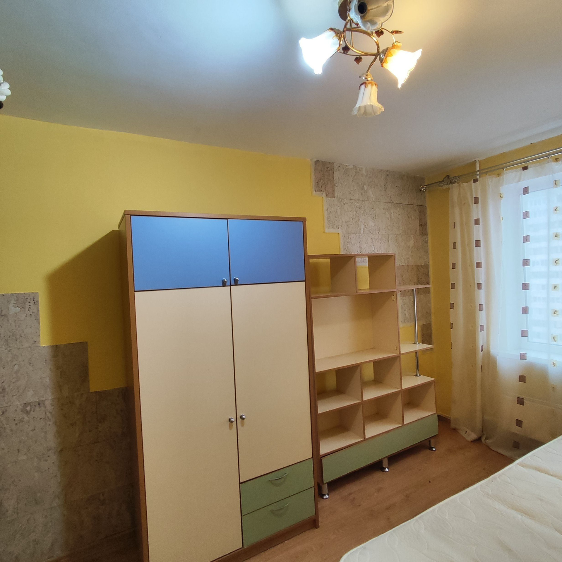 Квартира расположена на 11 этаже.  Сделан ремонт, стены, потолки  выровнены , окрашены . Те если захотите поменять цвет, просто перекрасьте.