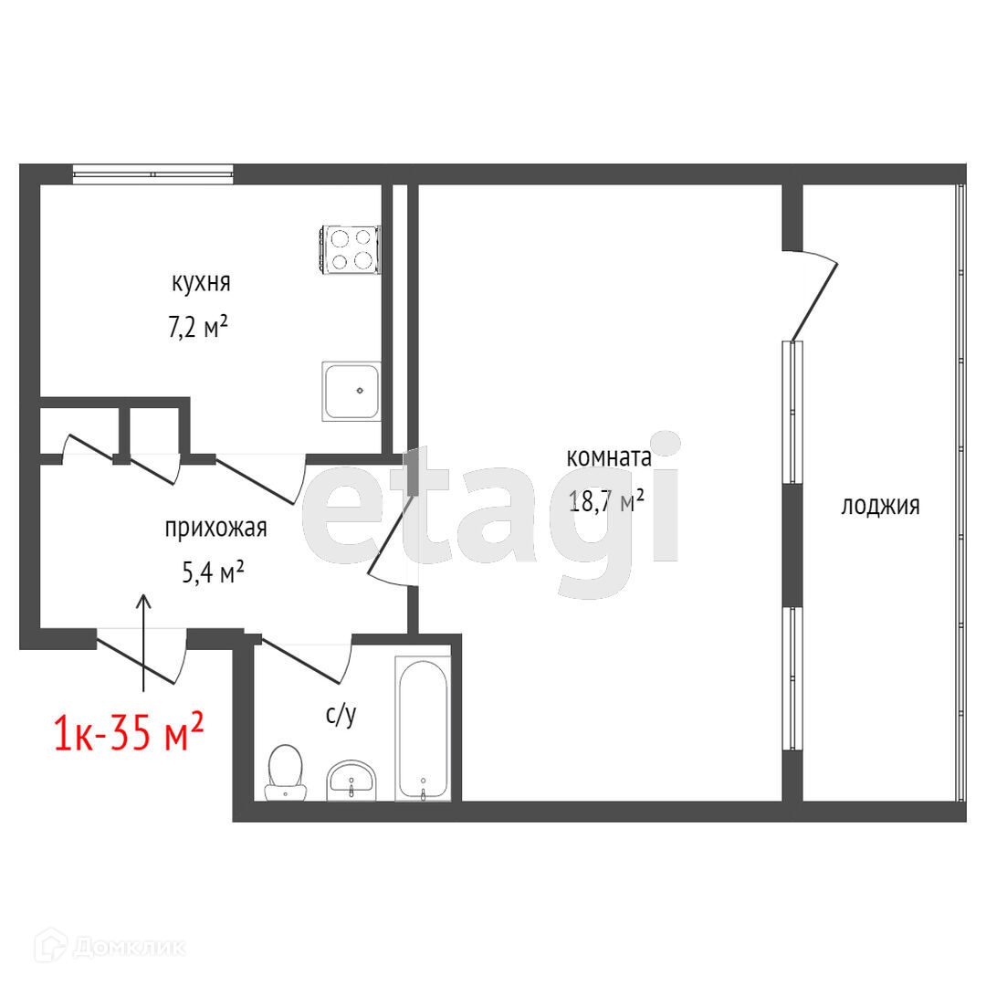 Общая площадь 35 м2