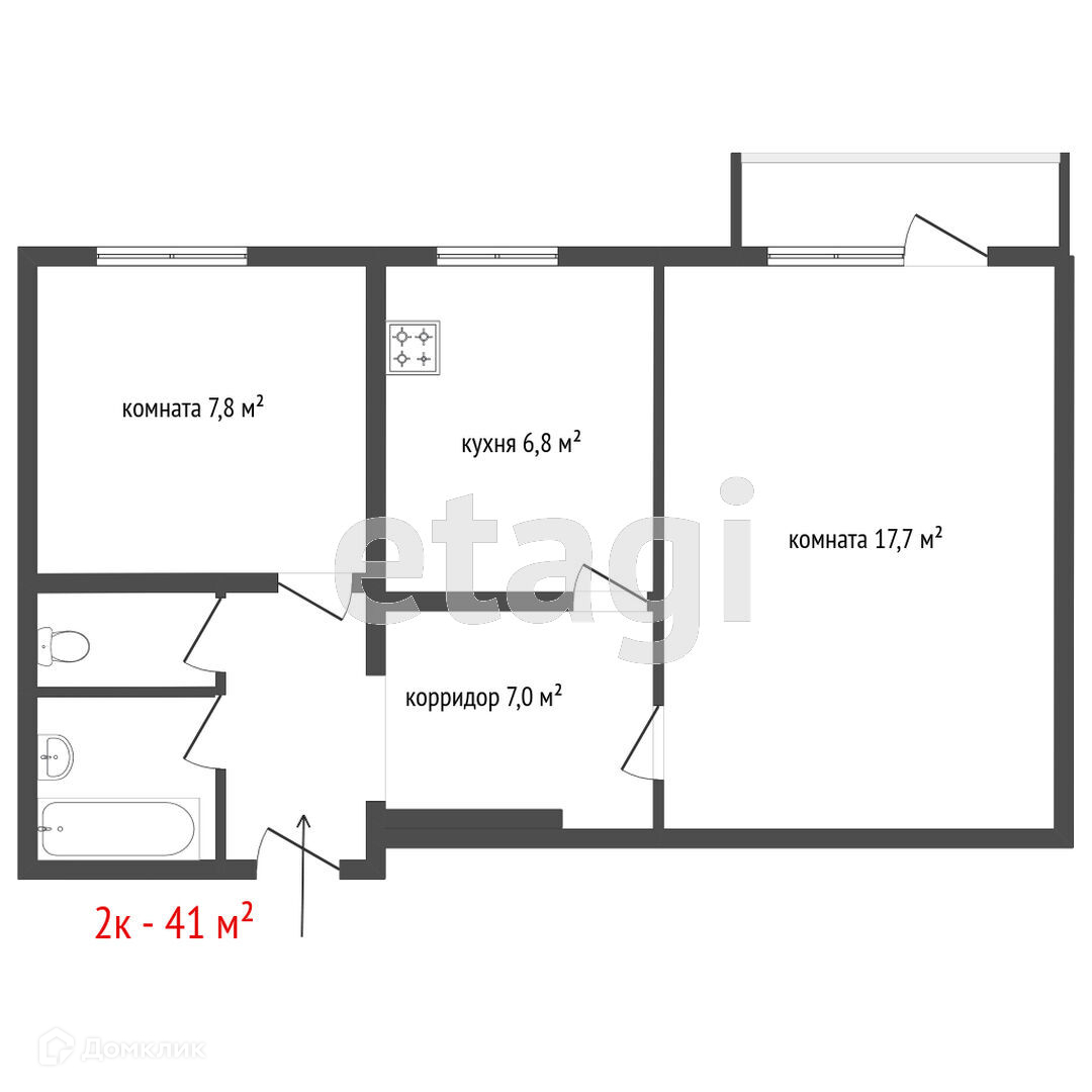 Общая площадь 41 м2