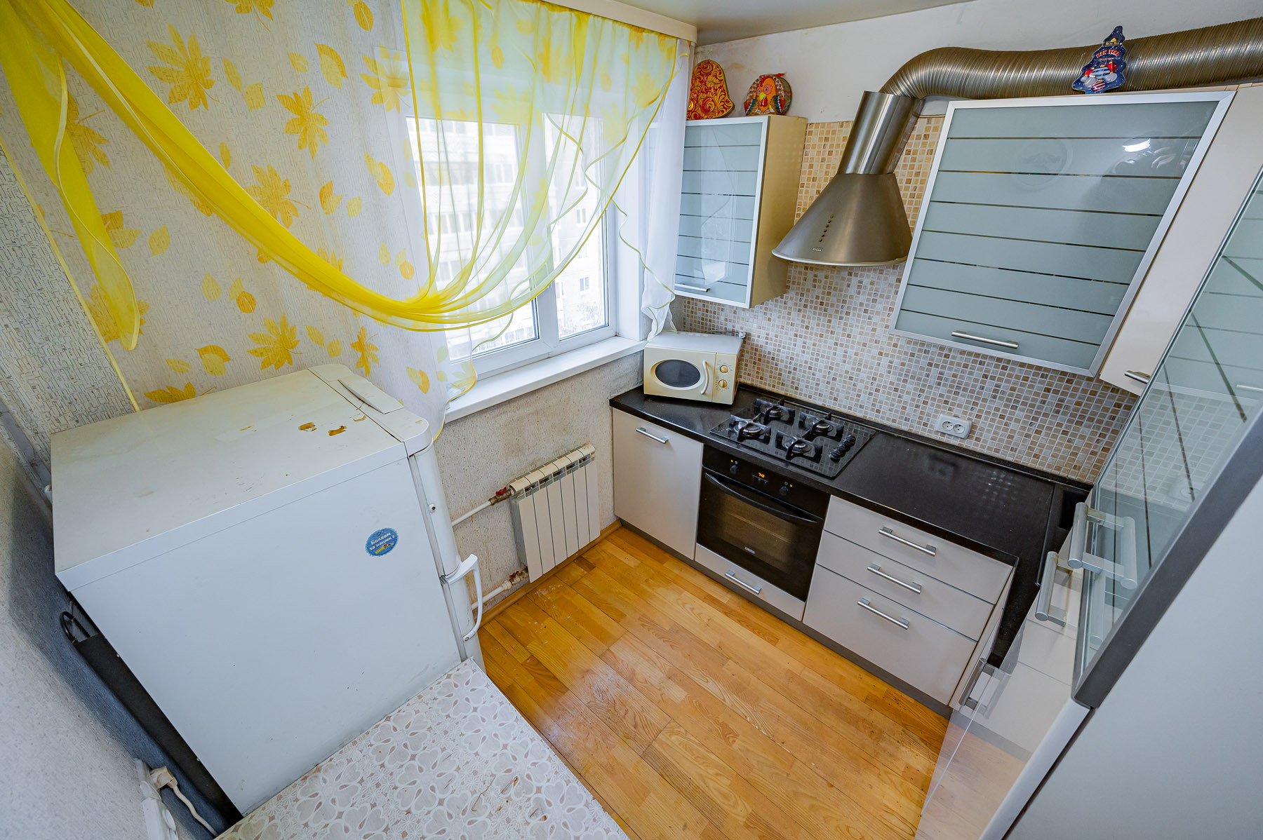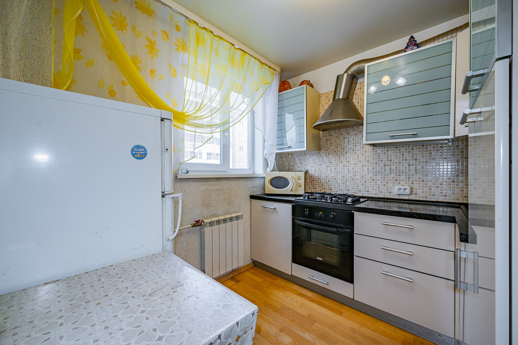 В квартире сделан косметический ремонт, установлены окна, алюминиевые радиаторы, счётчики на воду, потолки натяжные. Комнаты очень светлые с правильной геометрией и по своему вкусу и желанию вы сможете легко освежить ремонт и создать уютное пространство. Кухонный гарнитур со встроенной техникой остаётся.