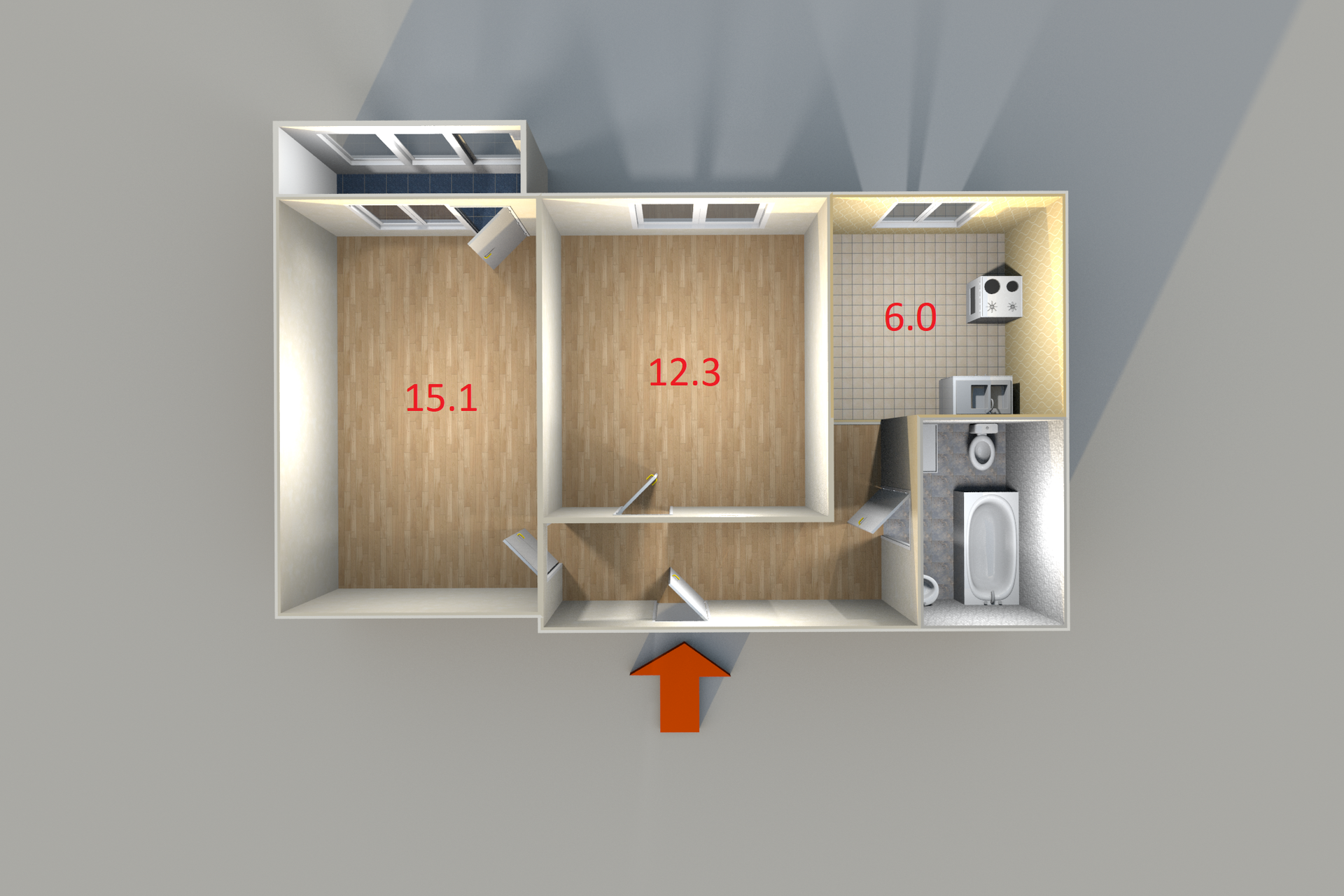 Жилая площадь 27.4 м2