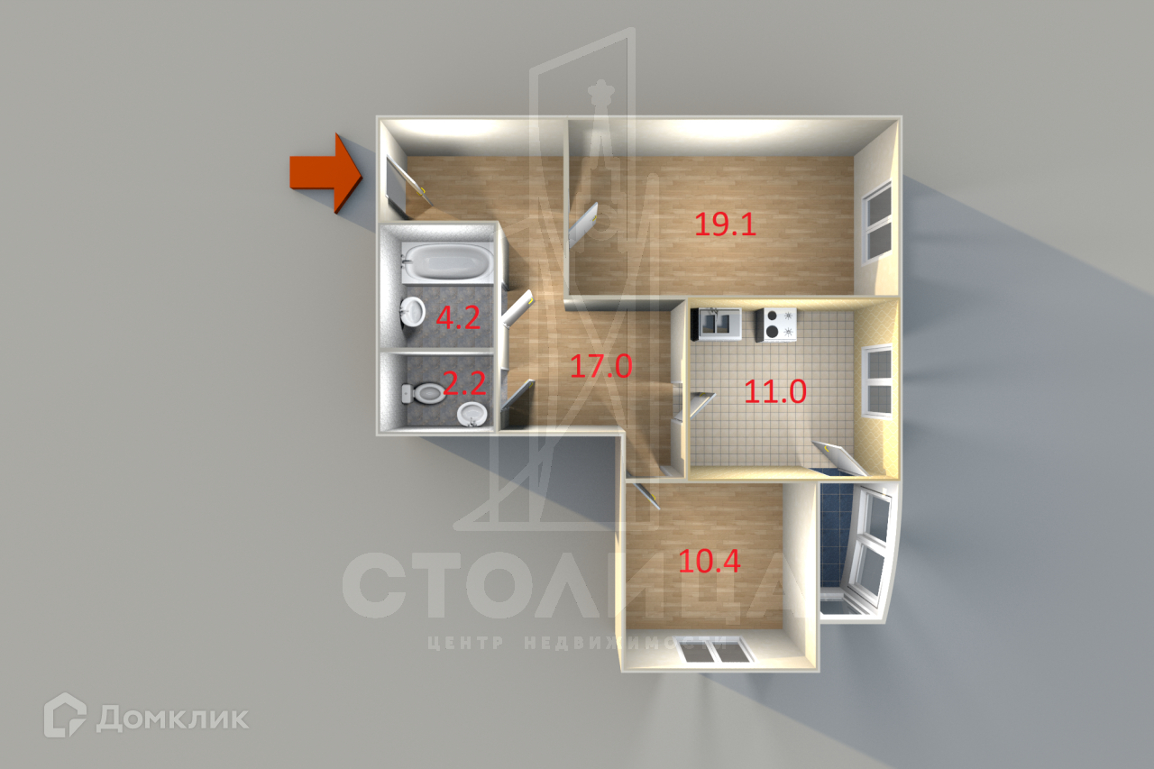 Общая площадь 64 м2