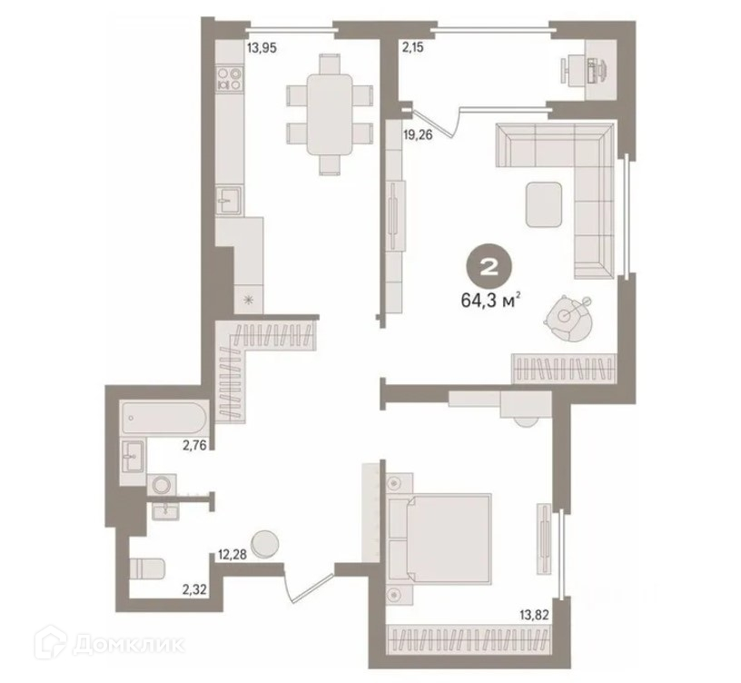 Количество комнат 2