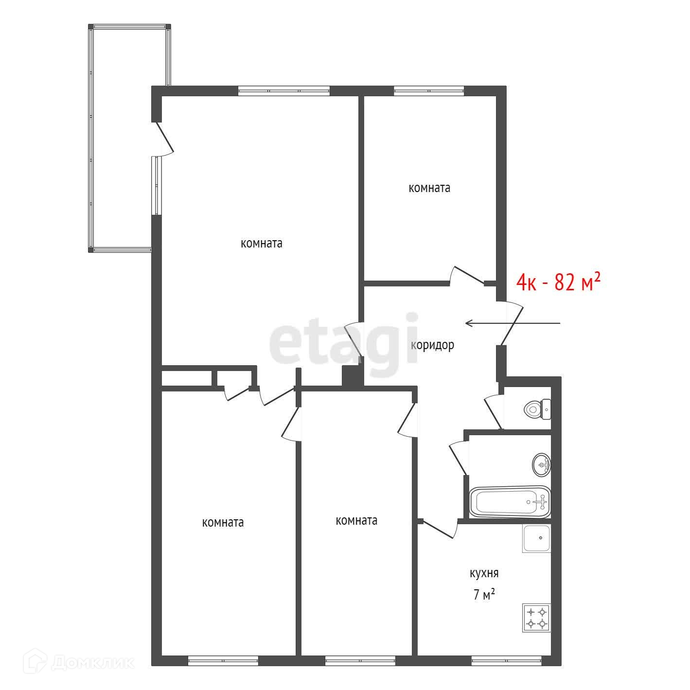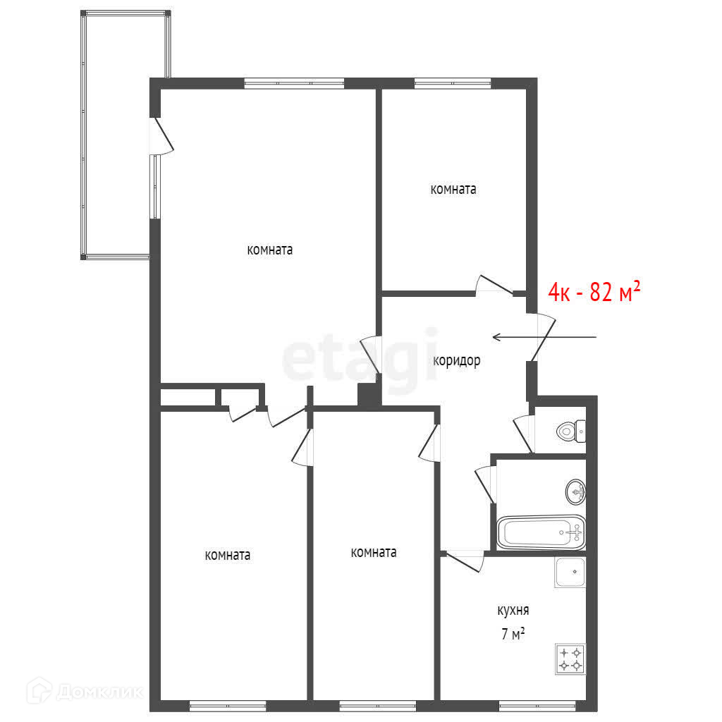Общая площадь 82 м2