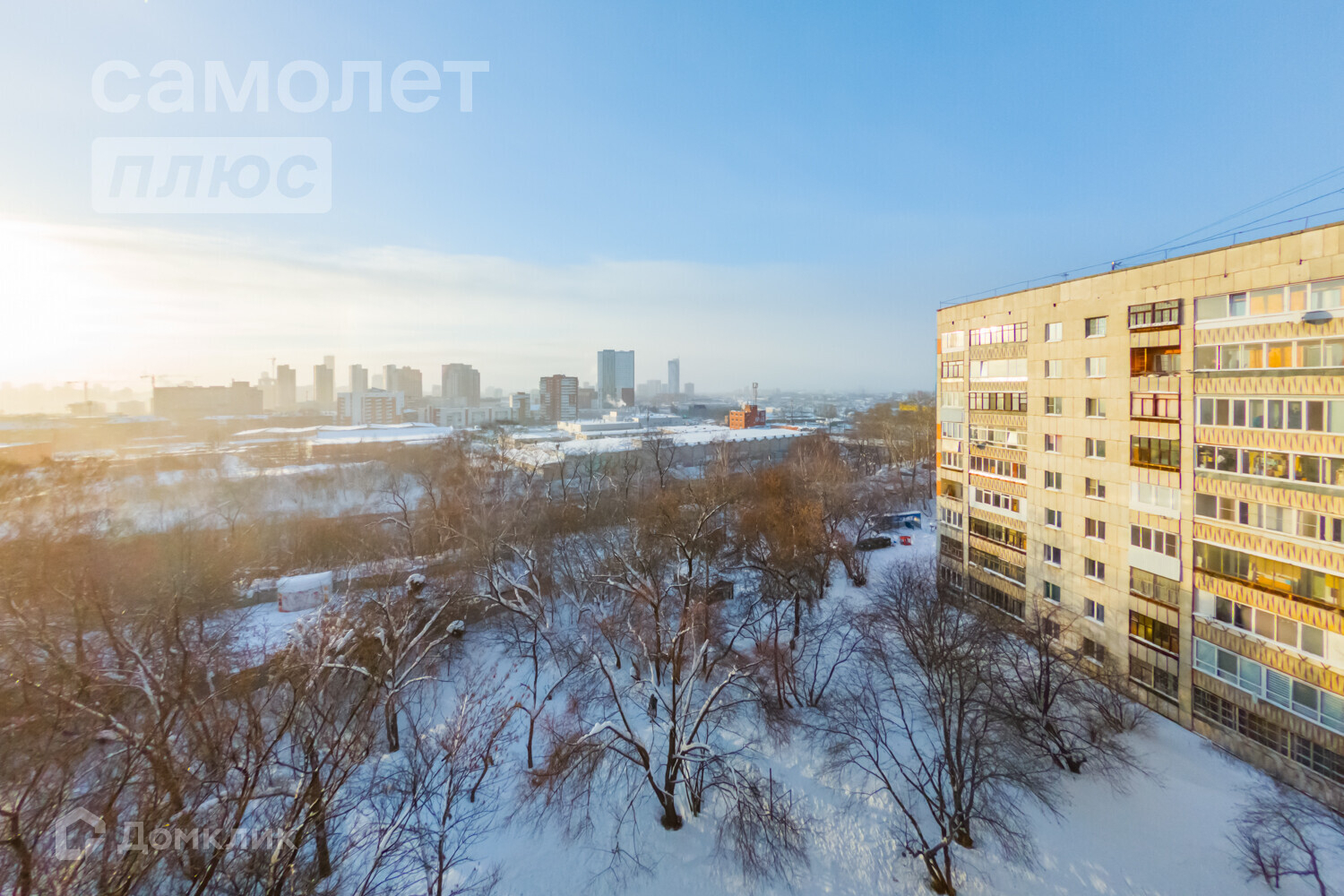 Окна квартиры расположены на запад, откуда открываются прекрасные виды, в том числе на красивый закат. В большой комнате потрясающее угловое окно!