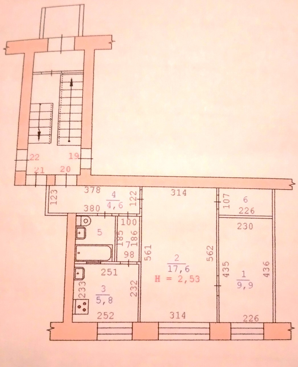 Высота потолков 2.53 м