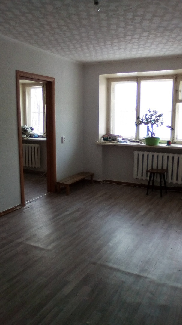 В квартире сделан косметический ремонт: светлые обои, линолеум, заменена сантехника. На кухне остается гарнитур.