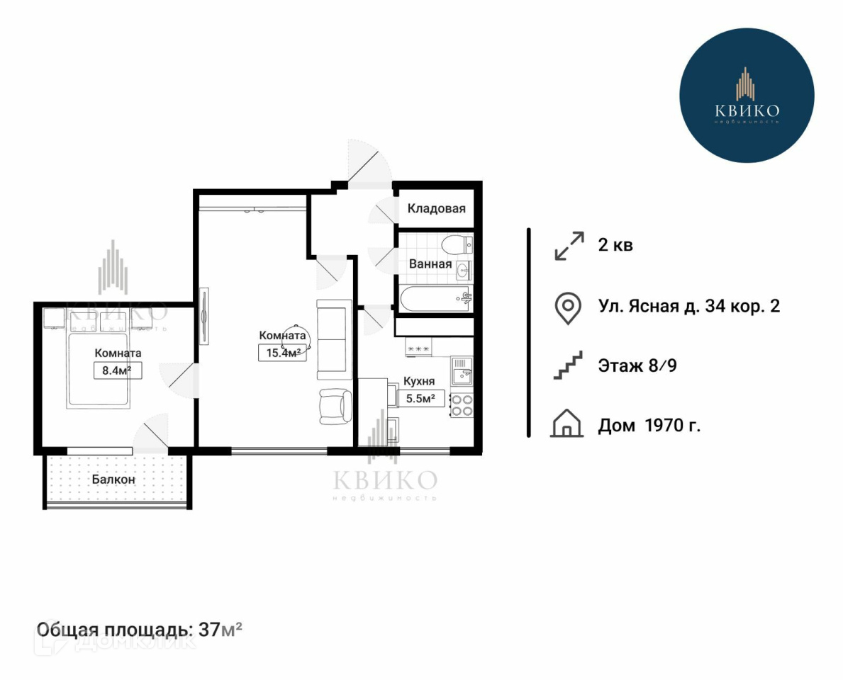 Общая площадь 37 м2