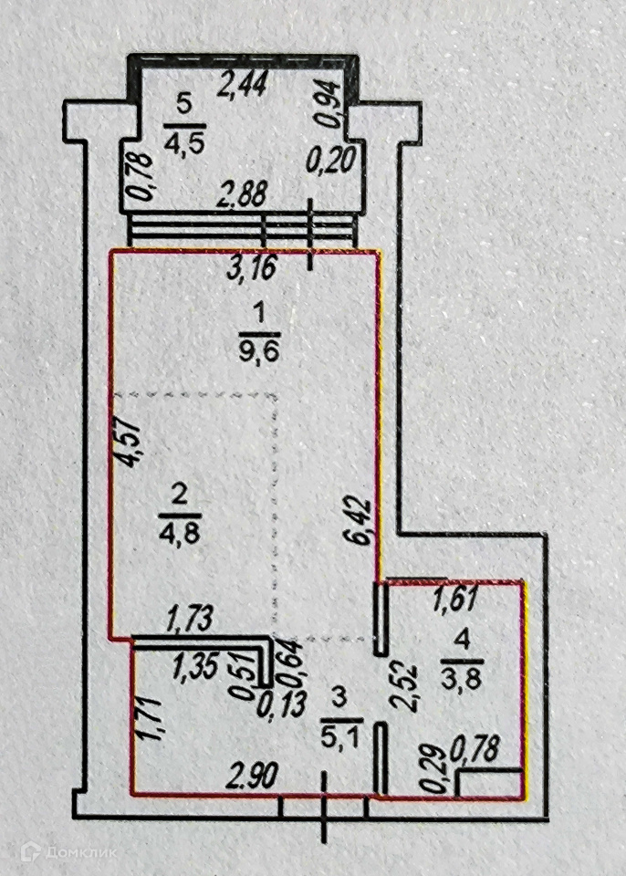Общая площадь 27.8 м2