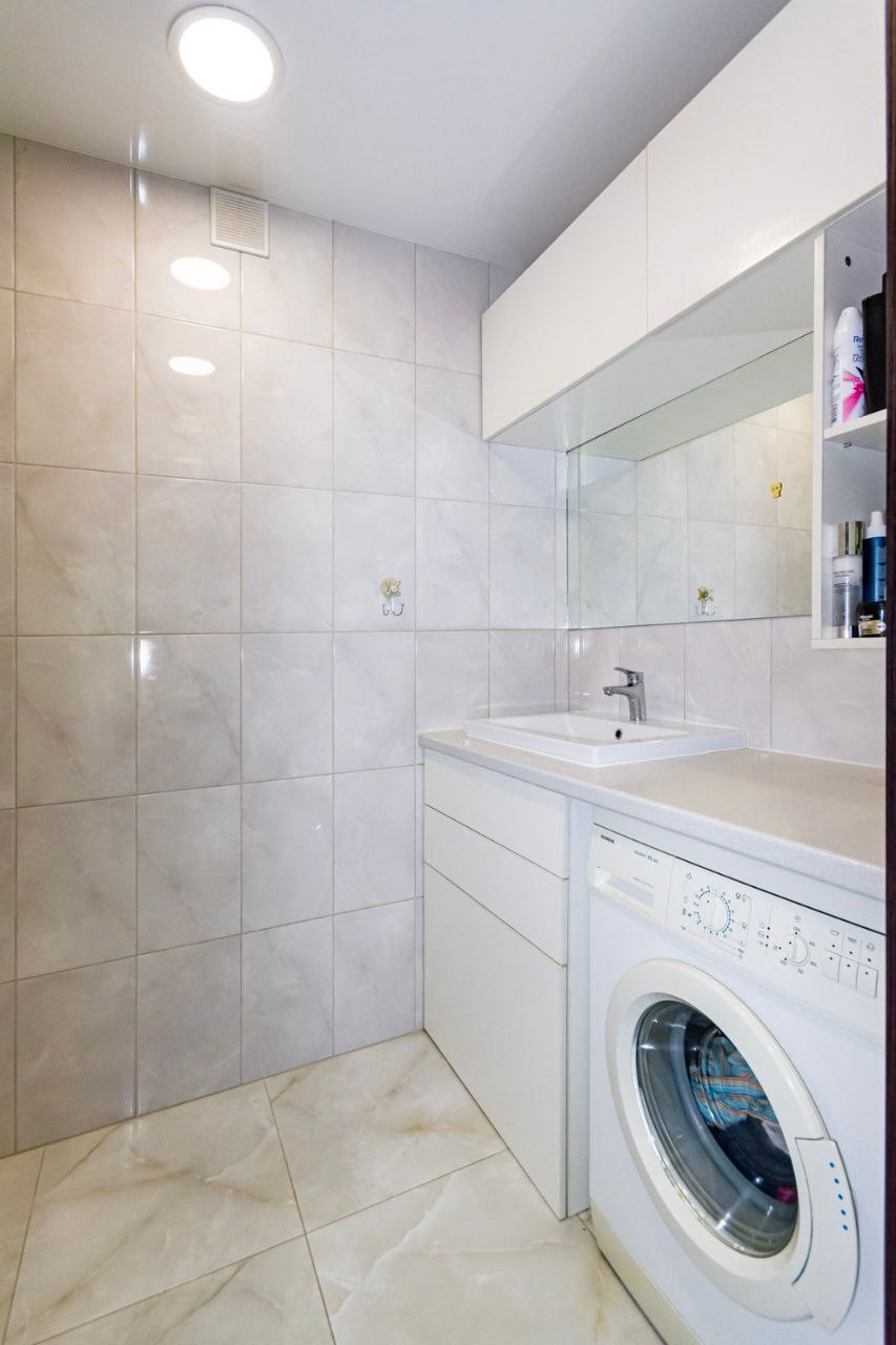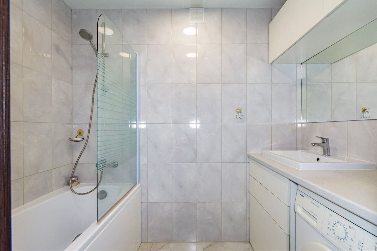 Ваннaя комнатa вся в кафелe.
