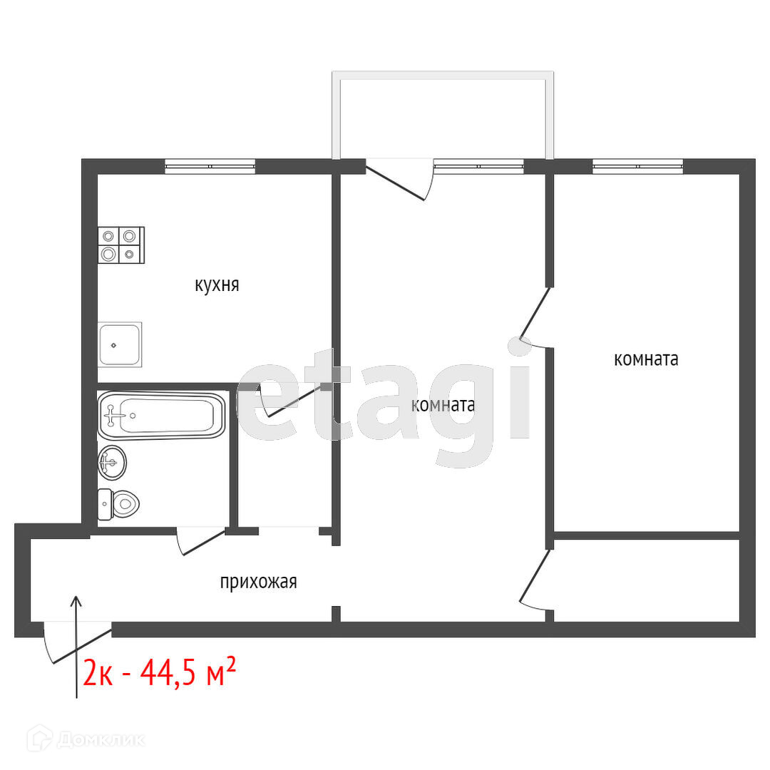 2-комнатная квартира, 41.3 м2, этаж 5 / 5, на продажу в Екатеринбурге, Камчатская улица, 43