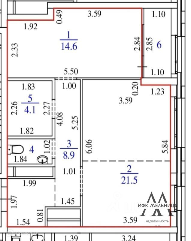 Общая площадь 55 м2