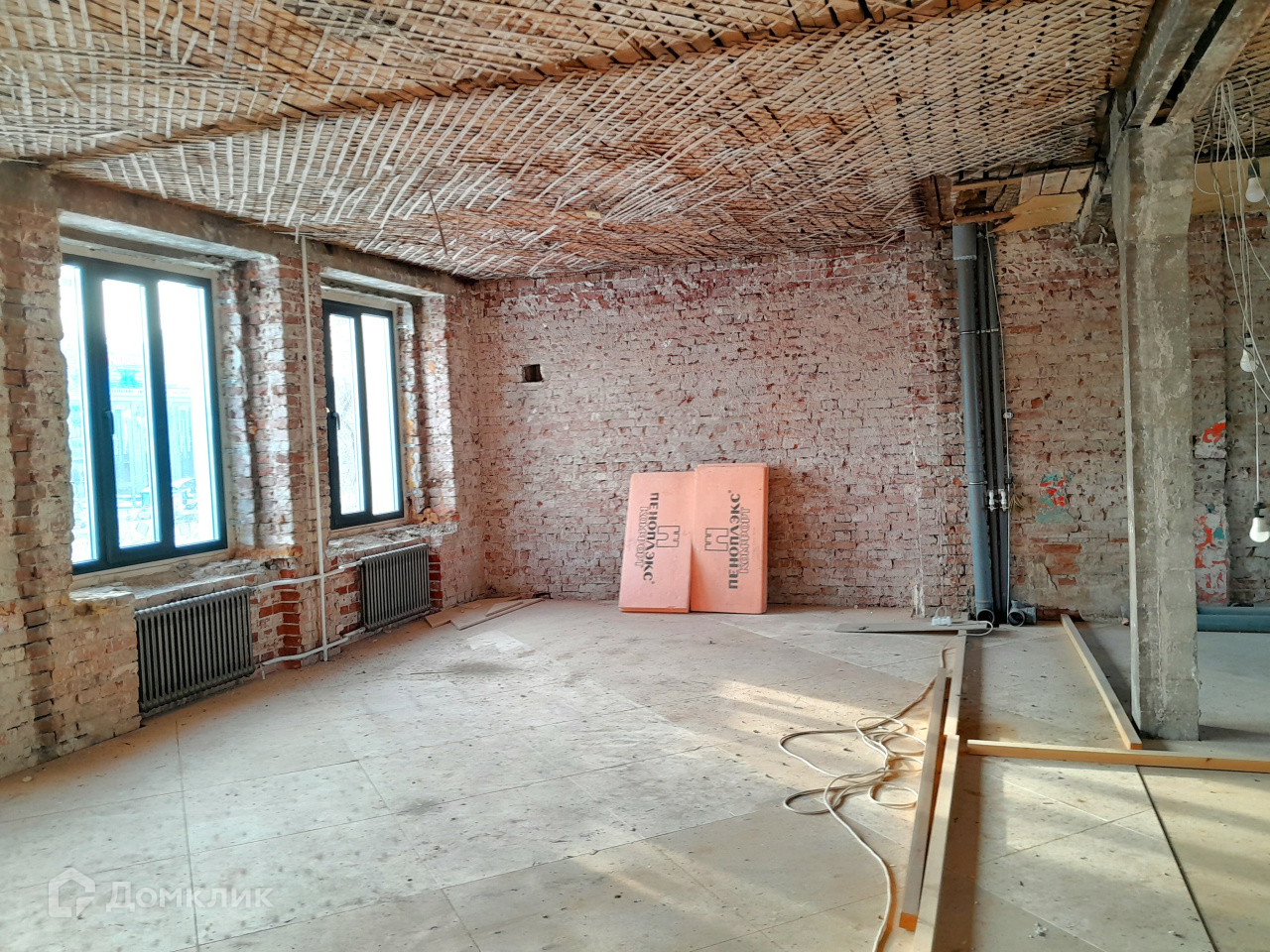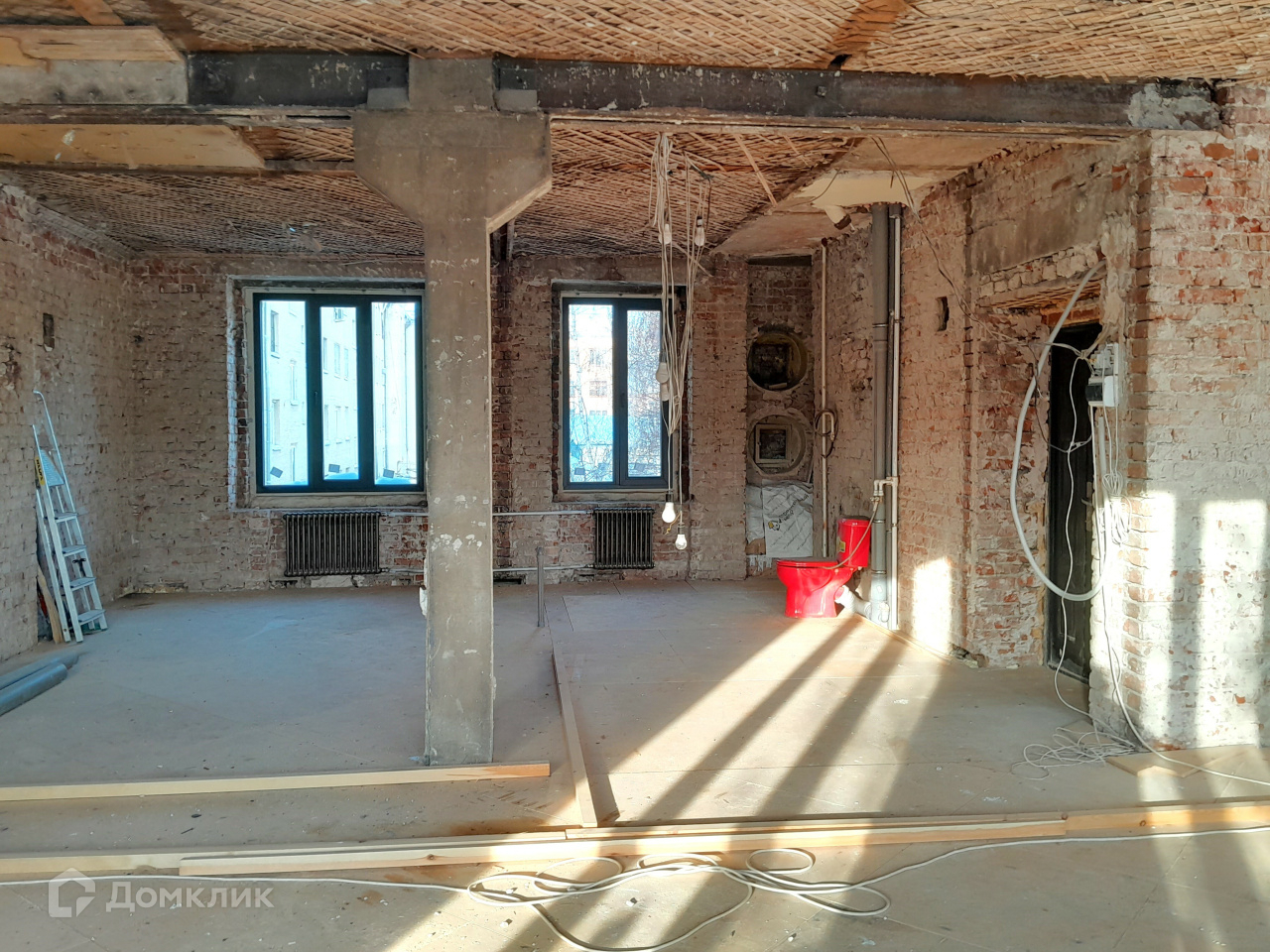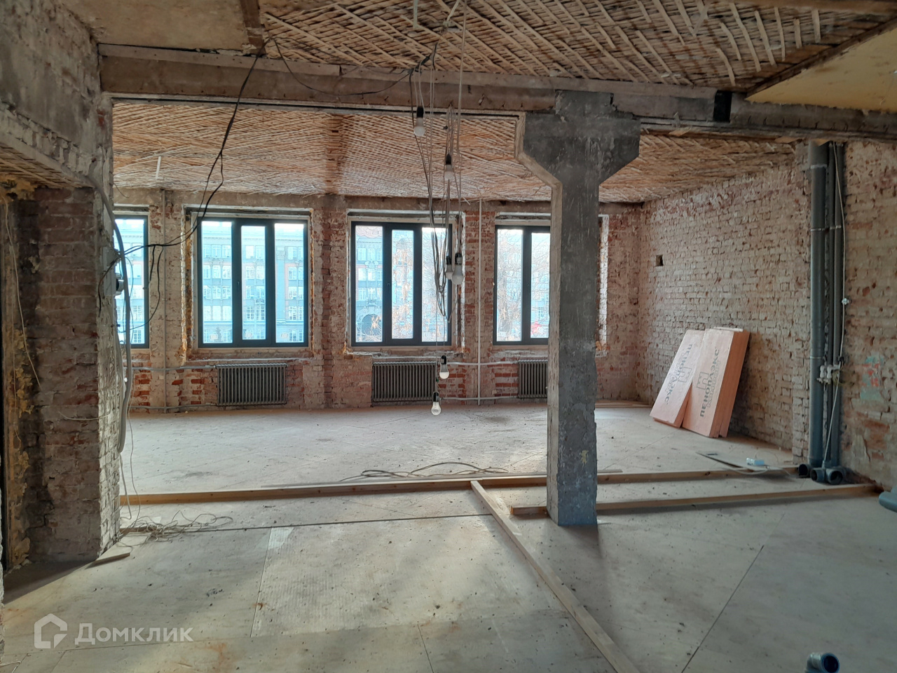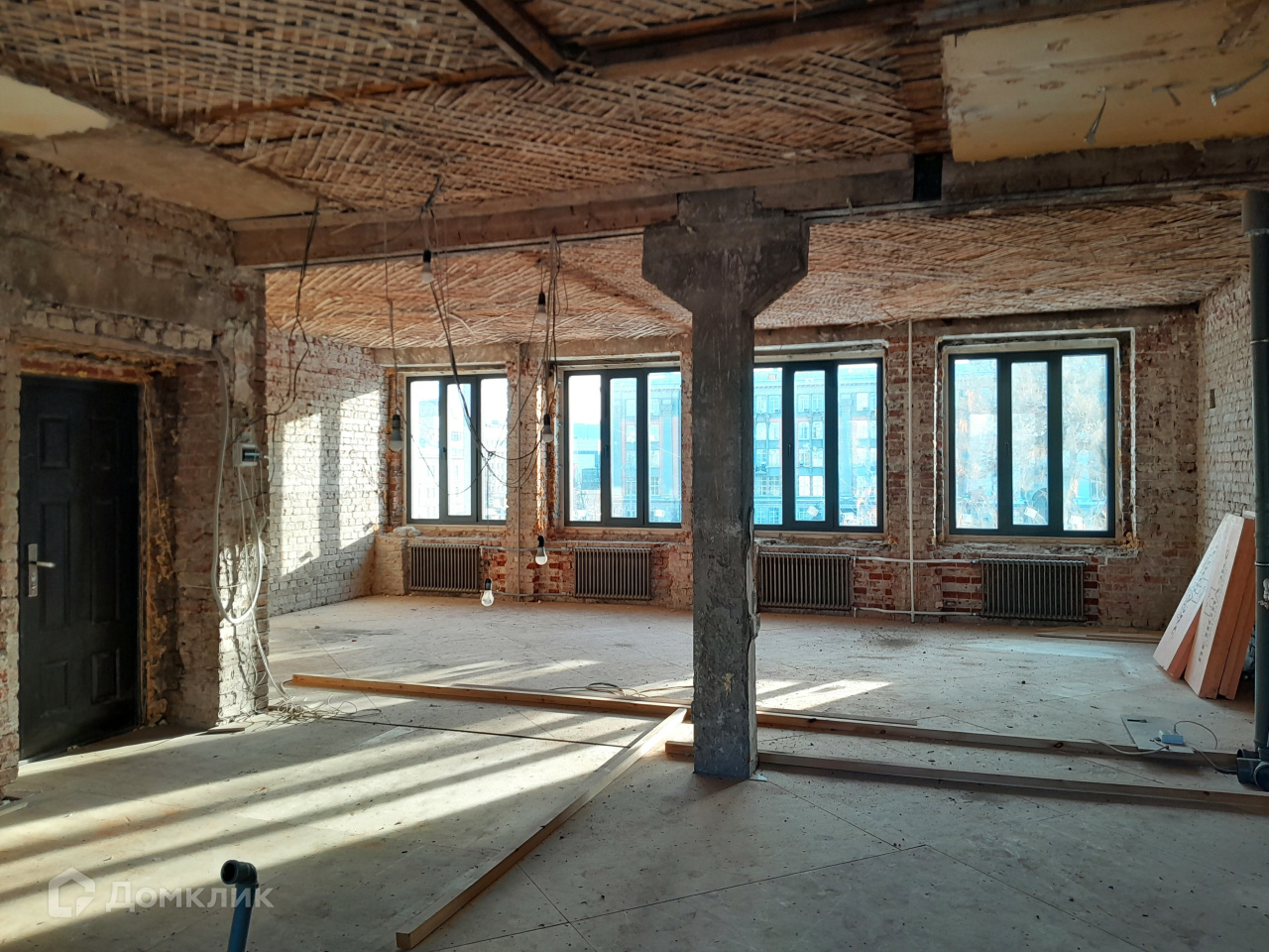 Квартира подготовлена для воплощения любых интерьерных фантазий: убраны все перегородки, оставлена только несущая колонна. Установлены новые качественные окна и радиаторы отопления. Высокие потолки (под 3 м) и шесть больших окон дают много света и ощущение простора.