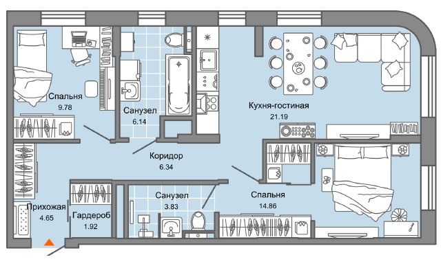 Общая площадь 69 м2
