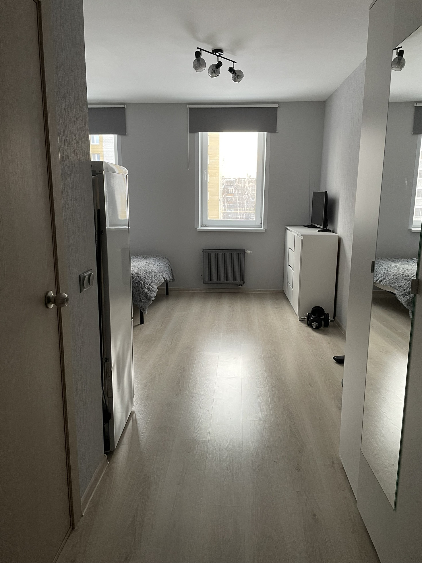 В квартире сделан качественный ремонт, на материалах не экономили, делали для себя. Стены,потолки и батареи окрашены под интерьер. Установлены дорогие светильники с диодными лампами в едином стиле, а также качественные радиаторы с терморегуляторами не от застройщика.