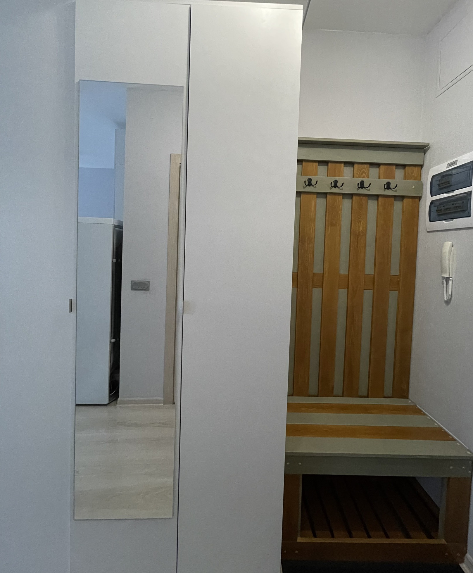 Система хранения: большой комод, шкаф, прихожая с подставкой для обуви.
