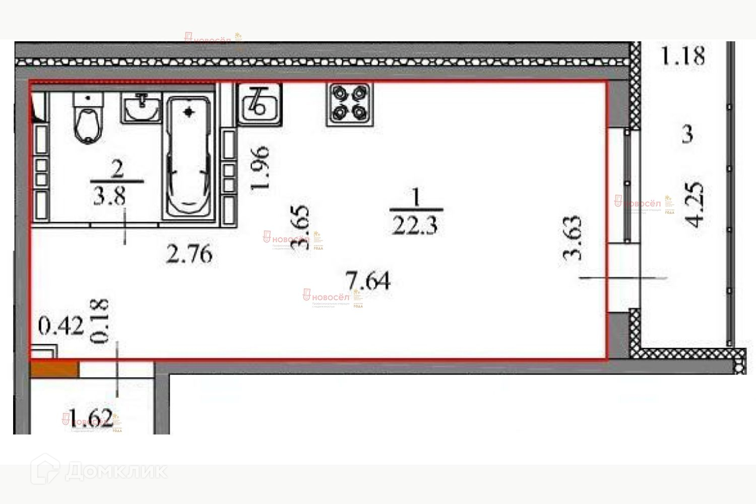 Общая площадь 26 м2