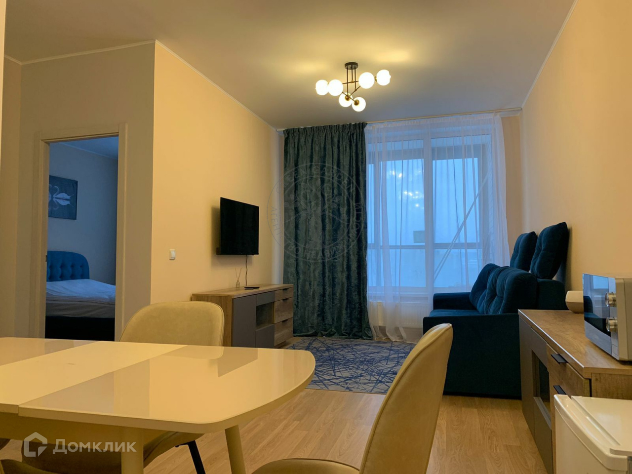 В квартире большая кухня-гостиная с удобным помещением, которое можно использовать как гардеробную или кладовую;  уютная спальня, совмещенный санузел, прихожая, застекленный балкон.