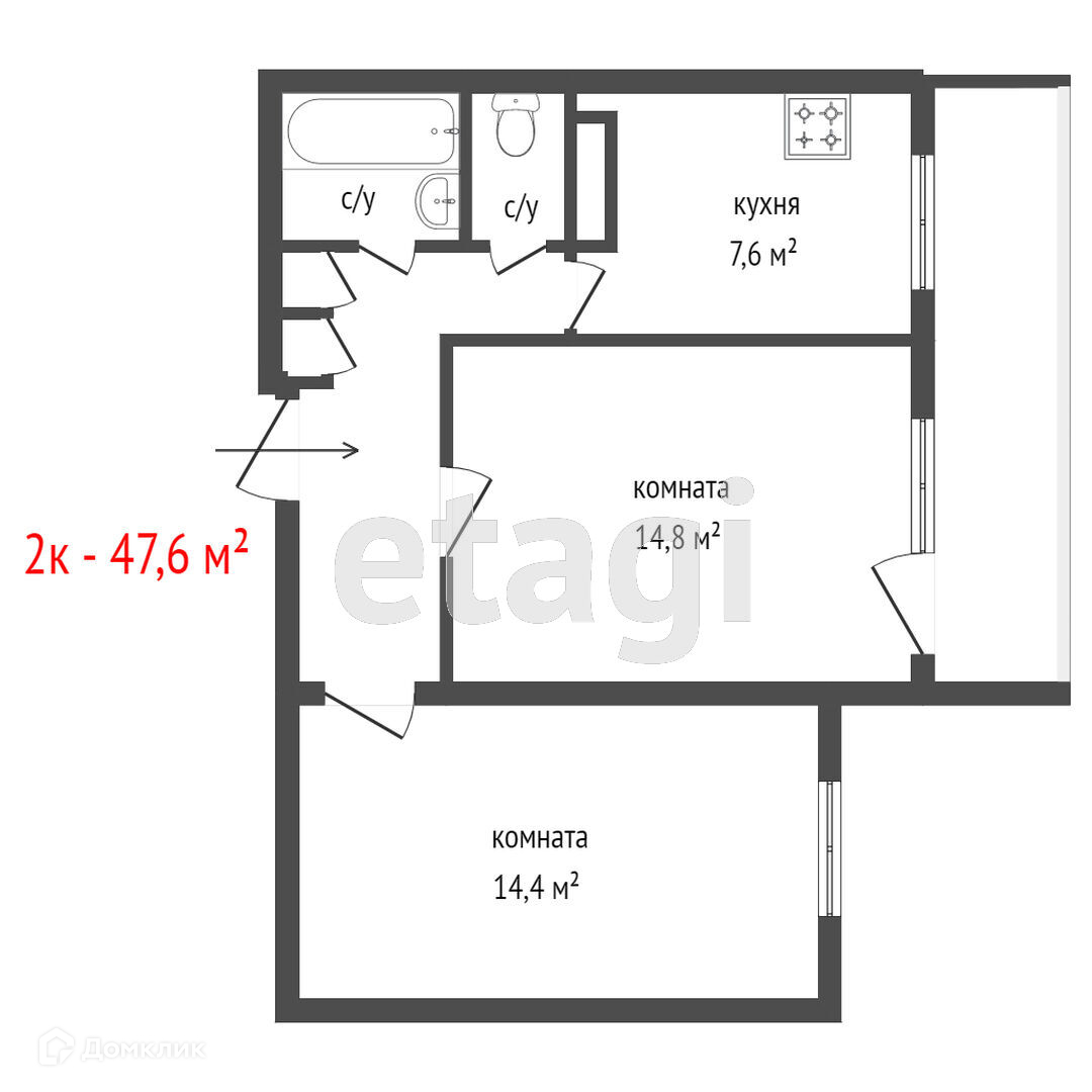 Общая площадь 47 м2