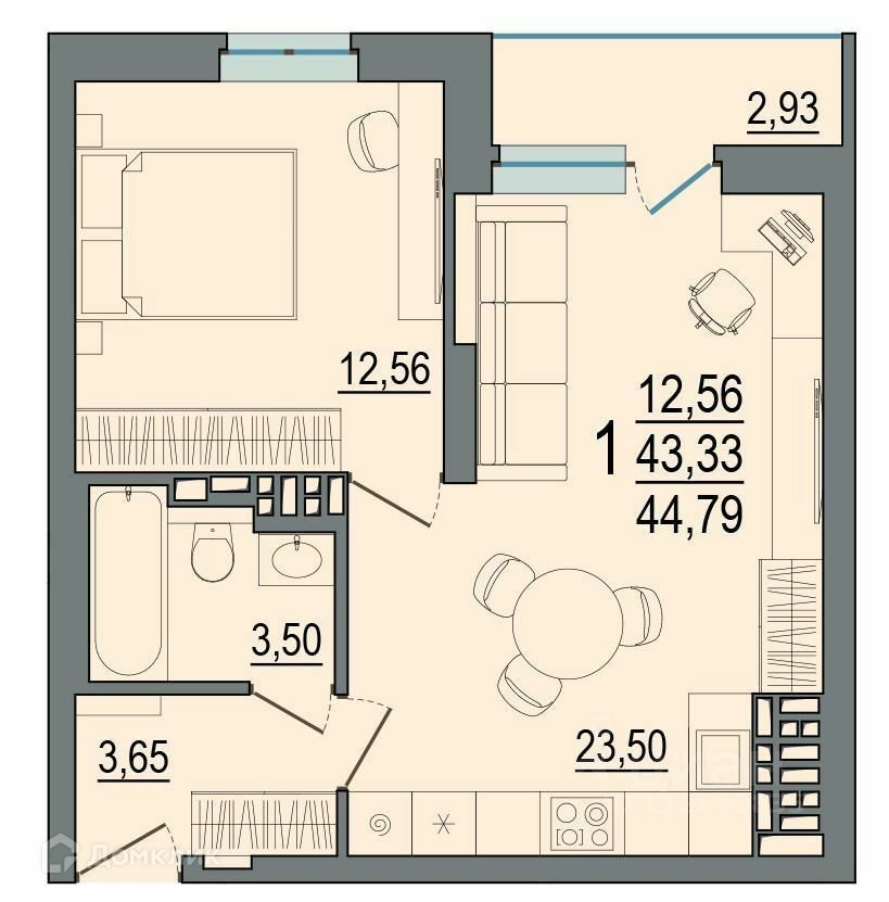 Общая площадь 43 м2
