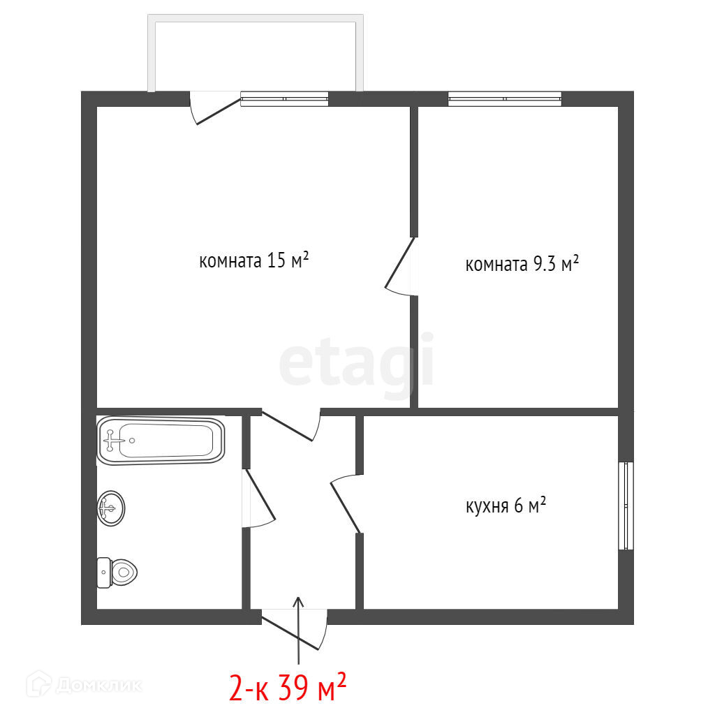 Общая площадь 39.2 м2