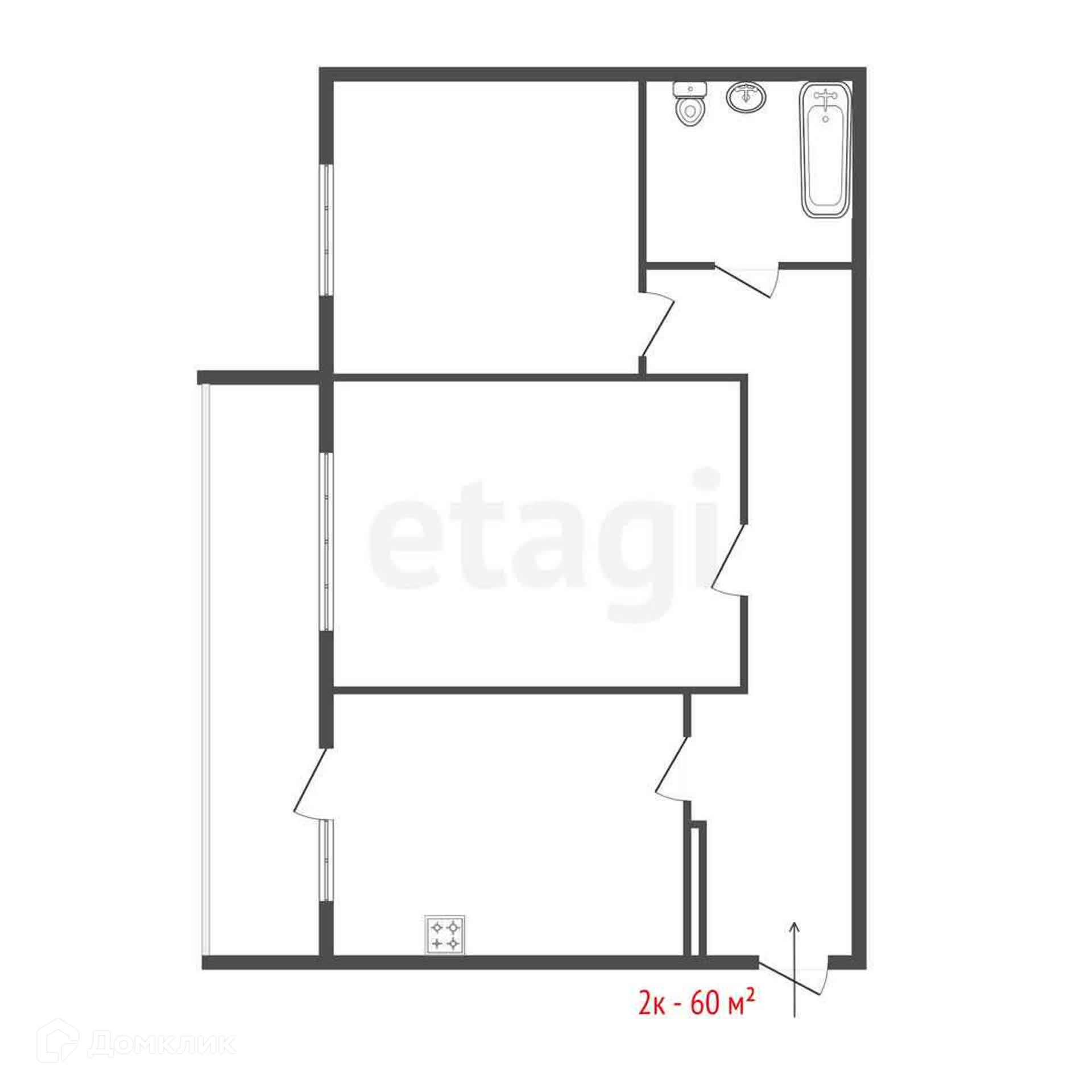 Общая площадь 60.3 м2